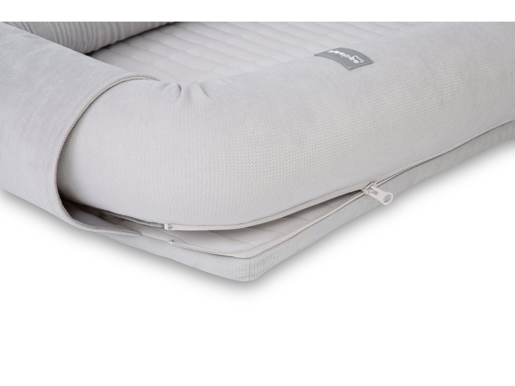 Egyszerűen vegye ki a matracot, és mossa ki a fészket mosógépben vagy kézzel 30°C-on, kímélő programon - max. 800 fordulat. Ne használjon fehérítőt, ne szárítsa szárítógépben. Tipp a könnyebb szárításhoz: a fészek széleit enyhén csavarja ki (hasonlóan a mosogatószivacsokhoz), és helyezze a fészket függőleges helyzetbe - pl. a kádra. Ennek köszönhetően gyorsabban megszárad.