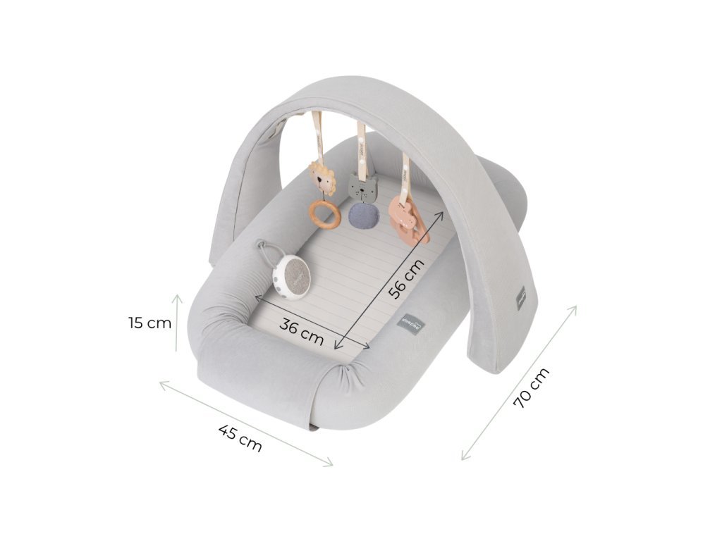 Multifunkciós babafészek babáknak játékhíddal és játékokkal 3 az 1-ben Sleepee Grey
