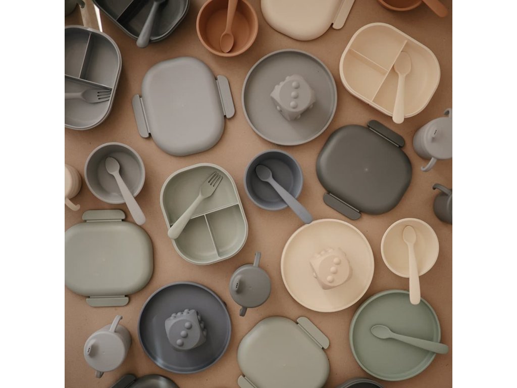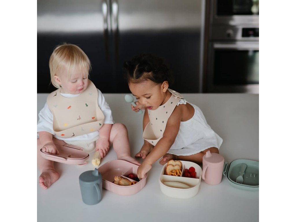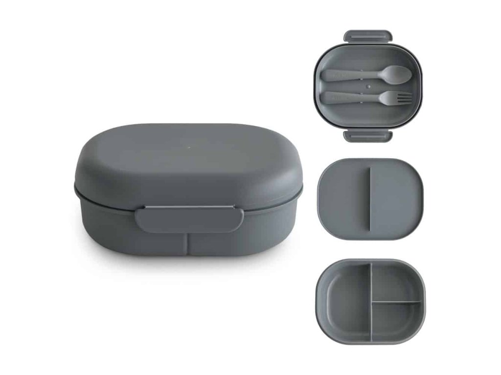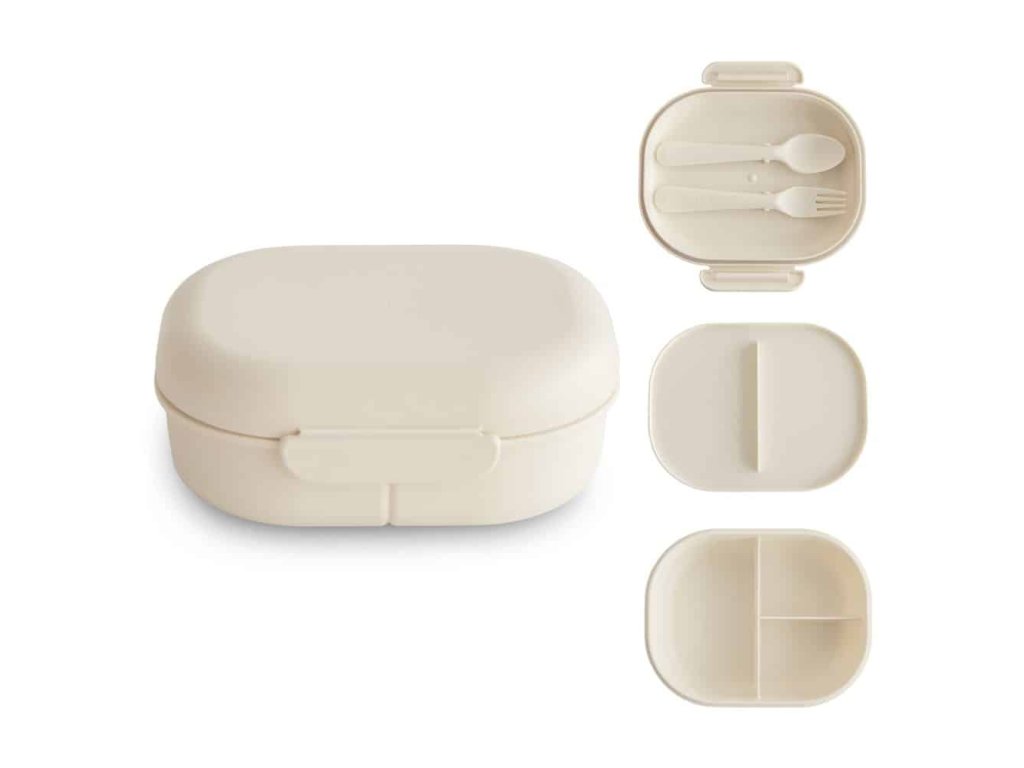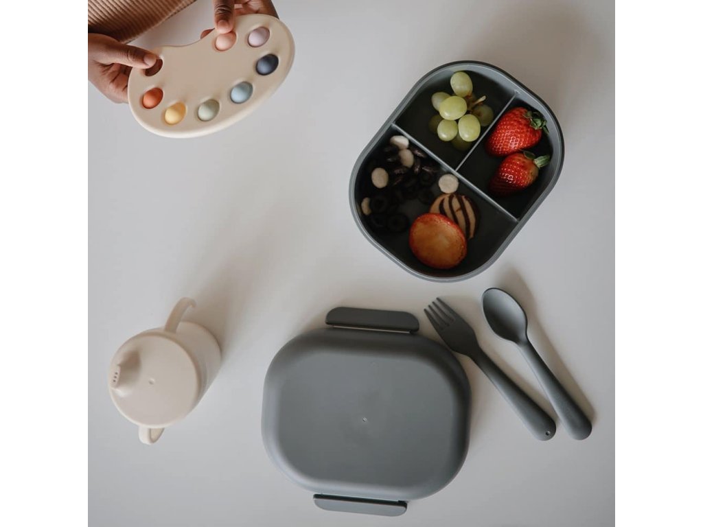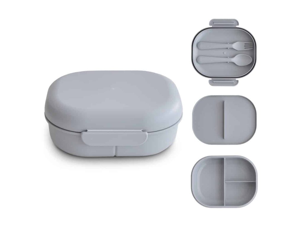 A Mushie uzsonnásdoboz ideális ételhordó doboz útközben. Az elválasztó rekeszek elválasztják a különböző élelmiszereket, és szorosan záródó fedéllel rendelkeznek. A doboz belsejében talál egy villát és egy kanalat, amelyek segítenek a gyermeknek az evésben.