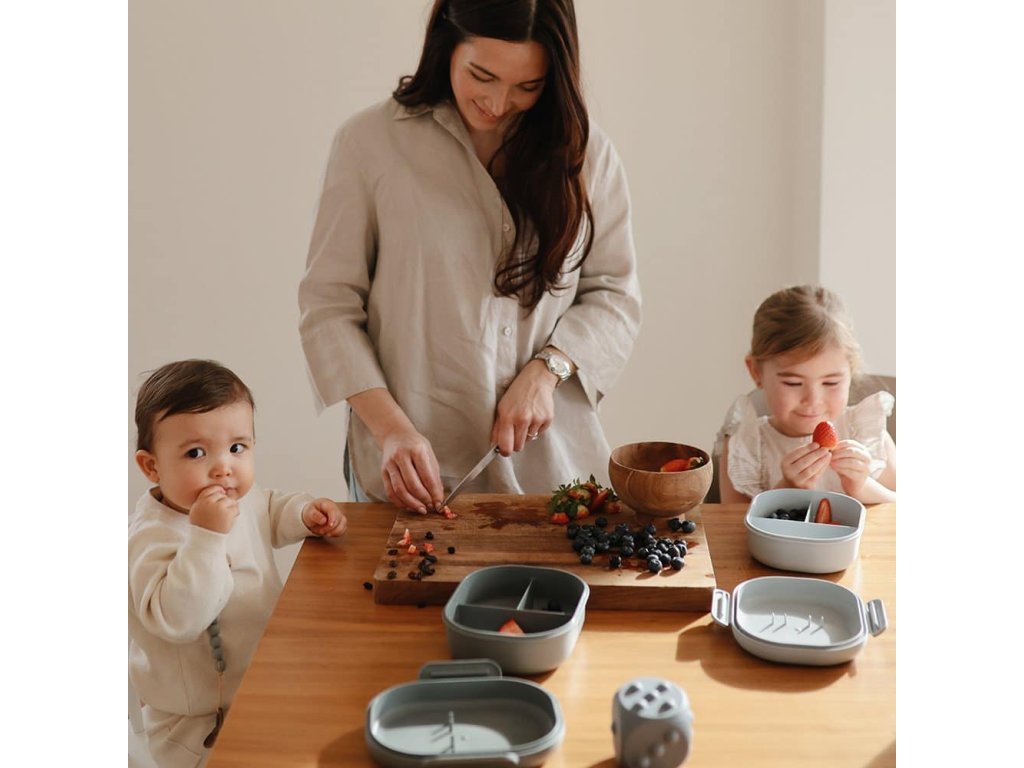 A Mushie uzsonnás doboz kiválóan alkalmas ételek tárolására utazás közben.