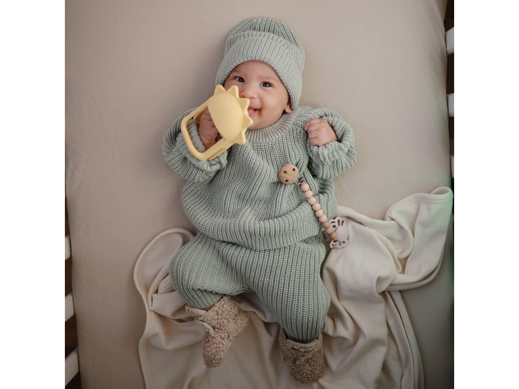A Mushie márka No-Drop Sun szenzoros rágókája úgy lett kialakítva, hogy maximális kényelmet és enyhülést nyújtson a fogzás nehéz időszakában.