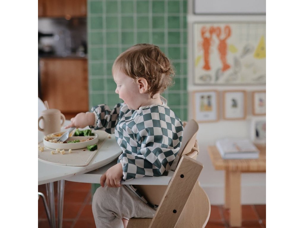 Mushie hosszú ujjú előke a rendetlenség nélküli étkezésekhez!