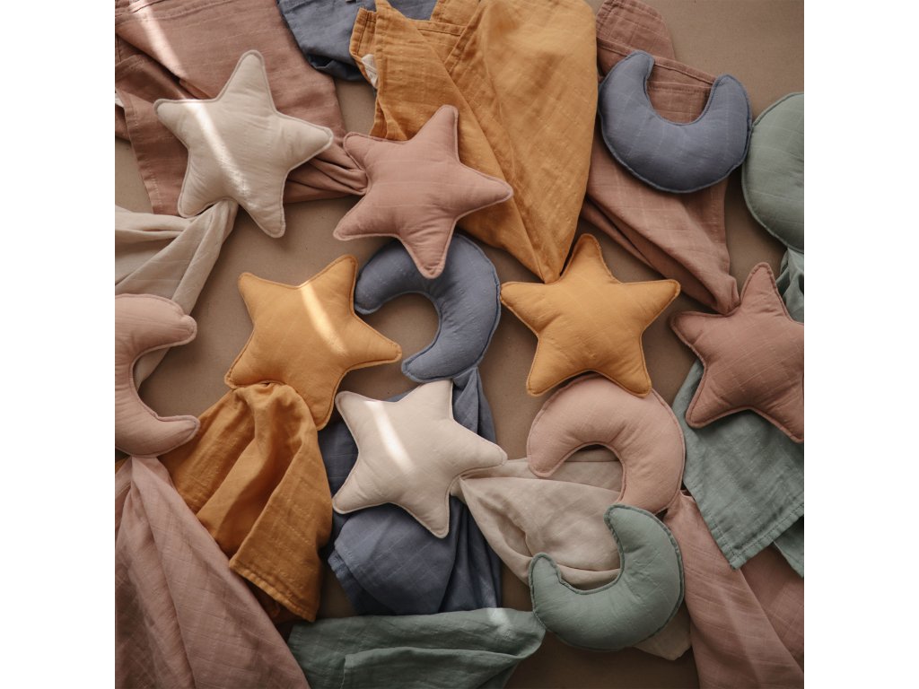 A Mushie a minimalizmus, a finom földszínek és pasztellszínek, valamint a tiszta vonalak kombinációjával a harmónia érzetét kelti. Időtálló és elegáns dizájnjával a Mushie termékek minden pillanatot szebbé varázsolnak gyermekével, és még különlegesebbé teszik azt. Mushie – prémium dizájnmárka a legkisebbeknek. A Mushie holdacskás babakelengye 100%-ban organikus pamutból készül, és a baba legkedveltebb társa lesz születésétől kezdve. Megnyugtatja és biztonságérzetet ad, ölelésre és simogatásra szolgál. Útközben emlékezteti az otthon illatára. Sok gyermek számára egy ilyen babakelengye nélkülözhetetlen a megnyugváshoz vagy elalváshoz. Ápolás: Mosás 30°C-on mosógépben, kímélő programmal. Ne szárítsa szárítógépben, ne fehérítse, ne vasalja és ne tisztítsa vegyileg. Összetétel: 100% organikus pamut (szövet), poliészter (töltelék). Méretek: 30,5 cm x 50,8 cm.