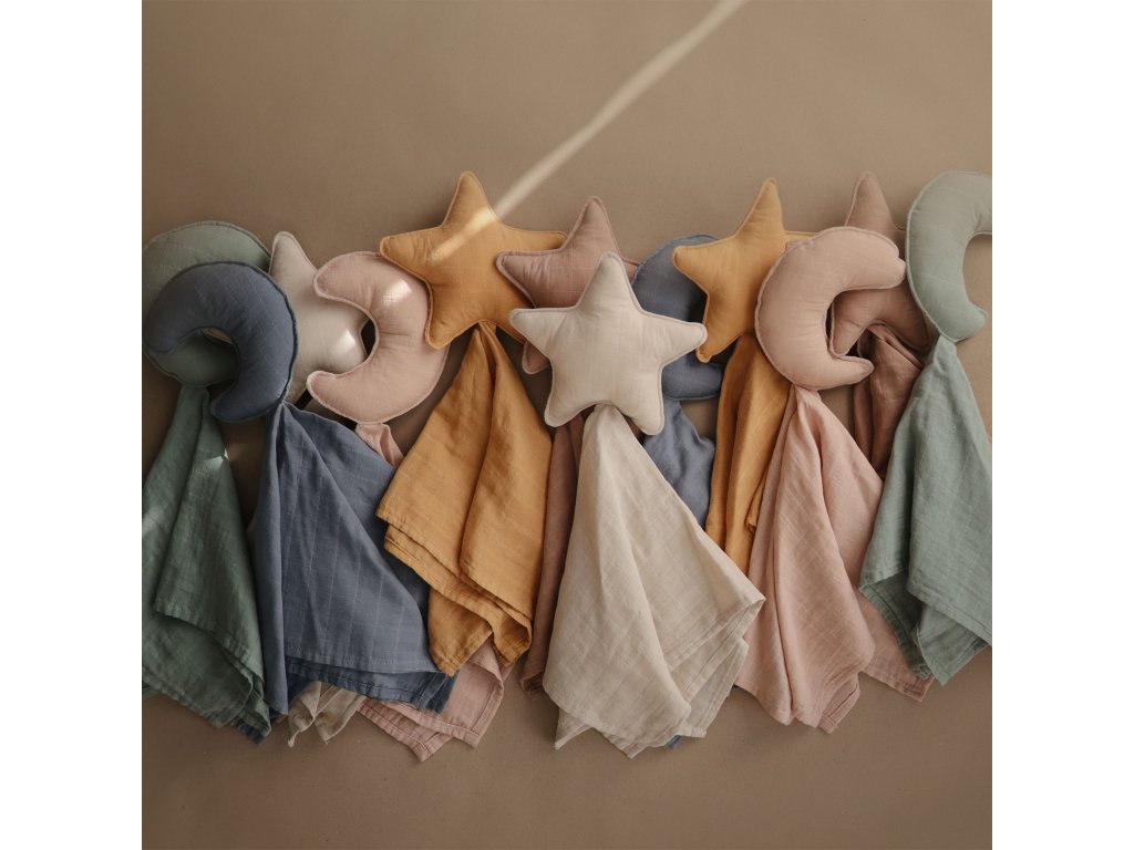 A Mushie a minimalizmus, a finom földszínek és pasztellszínek, valamint a tiszta vonalak kombinációjával a harmónia érzetét kelti. Időtálló és elegáns dizájnjával a Mushie termékek minden pillanatot szebbé varázsolnak gyermekével, és még különlegesebbé teszik azt. Mushie – prémium dizájnmárka a legkisebbeknek. A Mushie csillagos kedvence 100% organikus pamutból készült, és a születésétől kezdve a baba kedvenc társa lesz. Megnyugtatja és biztonságérzetet ad, ölelésre és simogatásra szolgál. Útközben emlékezteti az otthon illatára. Sok gyermek számára egy ilyen babakelengye nélkülözhetetlen a megnyugváshoz vagy elalváshoz. Ápolás: Mosás 30°C-on mosógépben, kímélő programmal. Ne szárítsa szárítógépben, ne fehérítse, ne vasalja és ne tisztítsa vegyileg. Összetétel: 100% organikus pamut (szövet), poliészter (töltelék). Méretek: 30,5 cm x 50,8 cm.