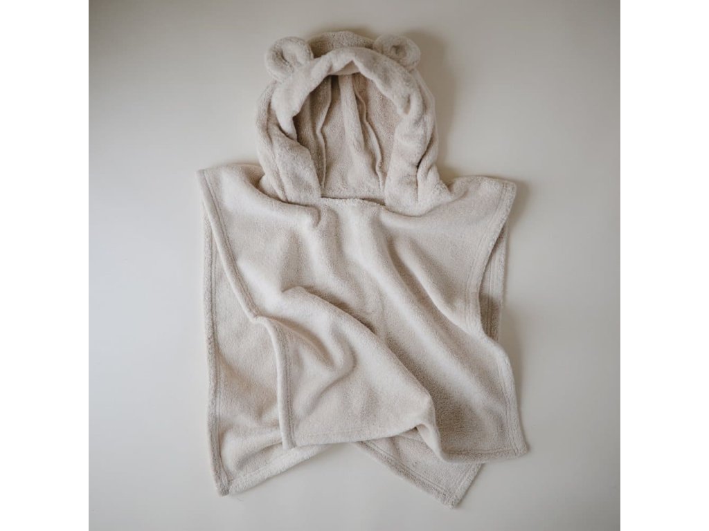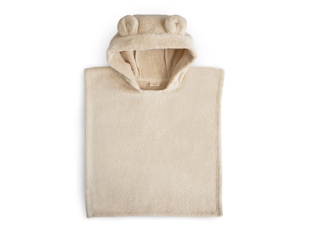 A poncsó nyitott kialakítása egyszerűsíti az öltözködési folyamatot a babák számára, és lehetővé teszi a gyors és egyszerű fel- és levételt. A dizájnhoz egy aranyos medvefülekkel ellátott kapucni tartozik, amely egy kis bájt kölcsönöz minden szárításnak.