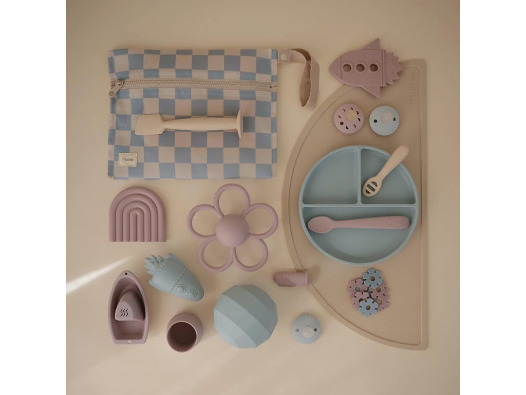 A Daisy csörgő nem mérgező élelmiszeripari szilikonból készült, amely biztonságos a rágcsálásra.