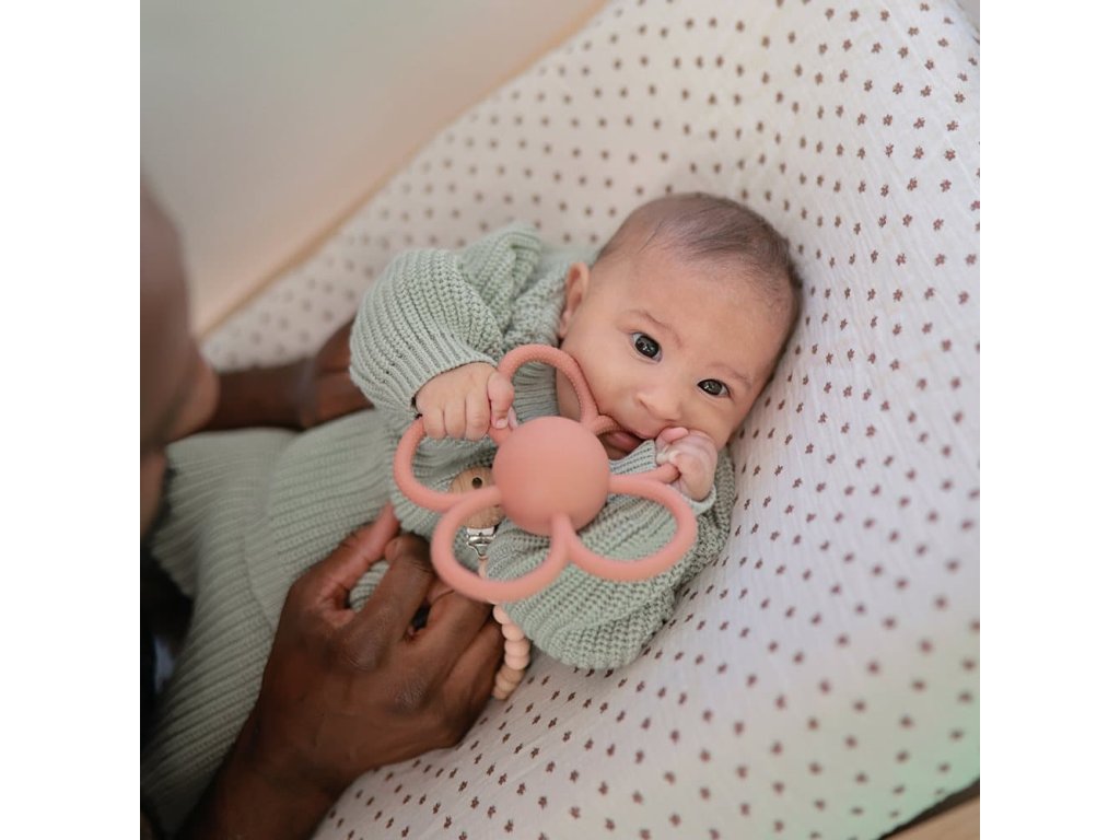 A Daisy csörgő nem mérgező, élelmiszeripari szilikonból készült, amely teljesen biztonságos a rágáshoz.