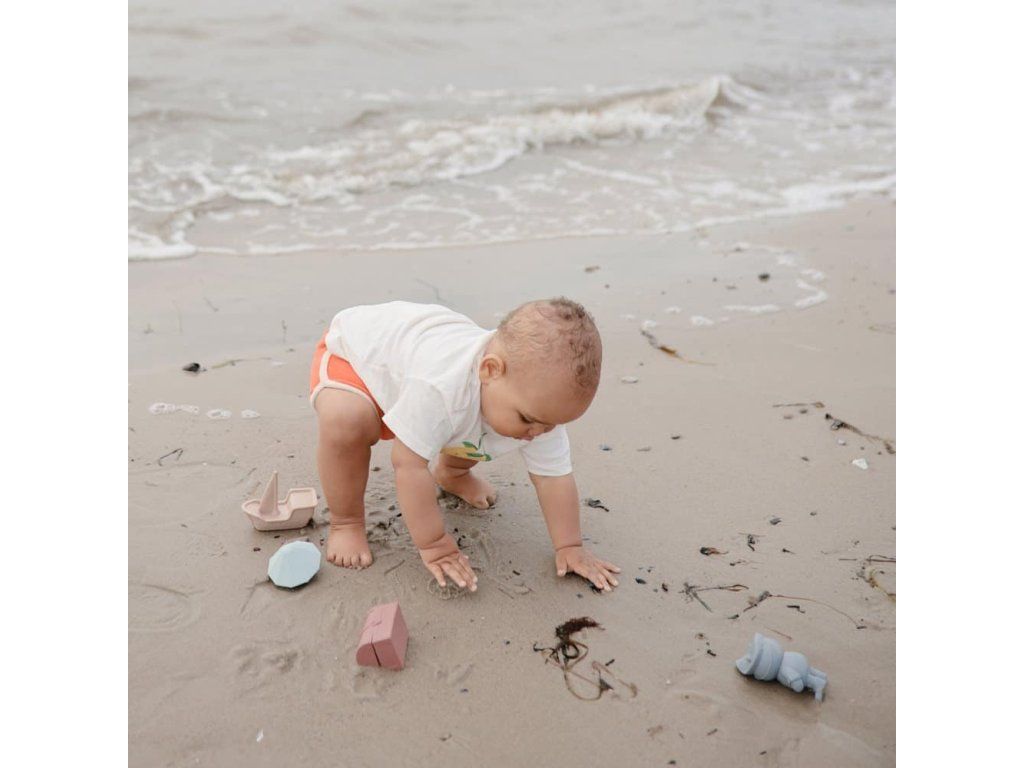 A játékok élelmiszer-minőségű szilikonból készültek, amely puha és könnyen megfogható a kisgyermekek kezében – legyen az száraz vagy nedves. A játékos kalóz téma ösztönzi a gyermek kíváncsiságát és képzeletét, és a fürdést szórakoztató és lebilincselő élménnyé változtatja.
