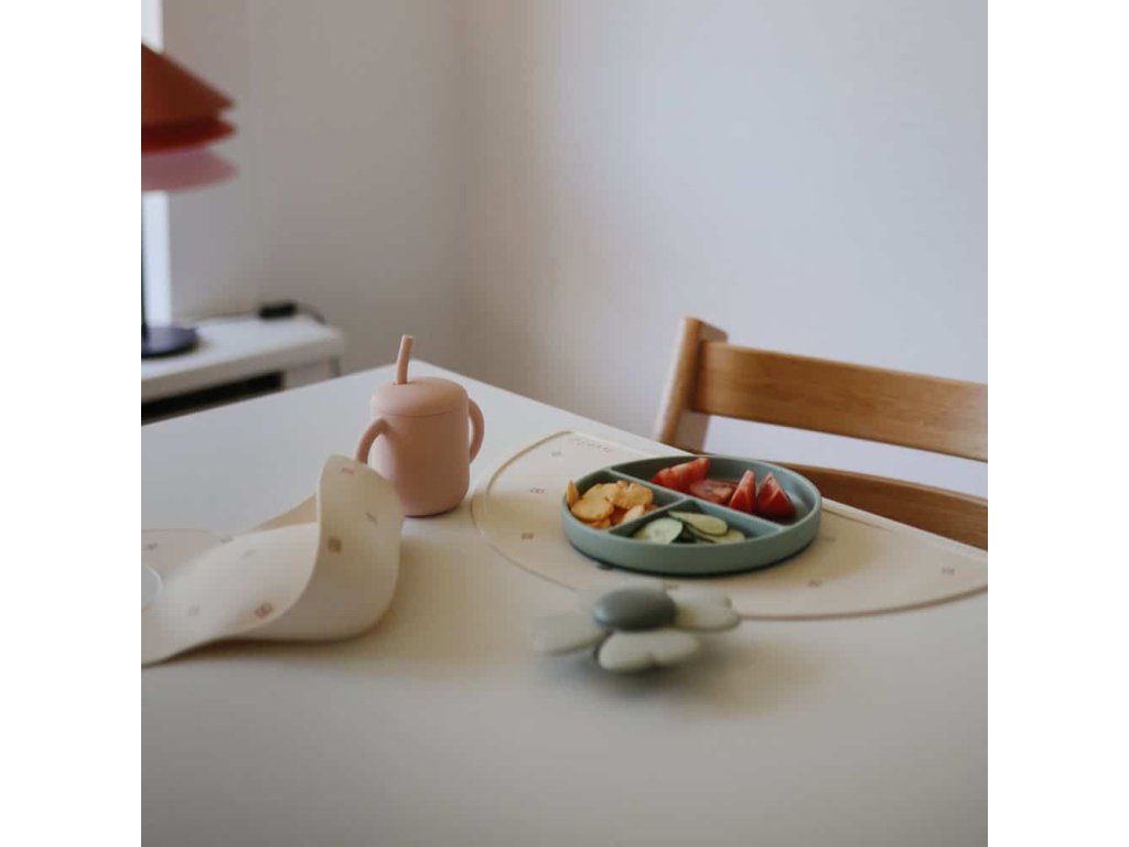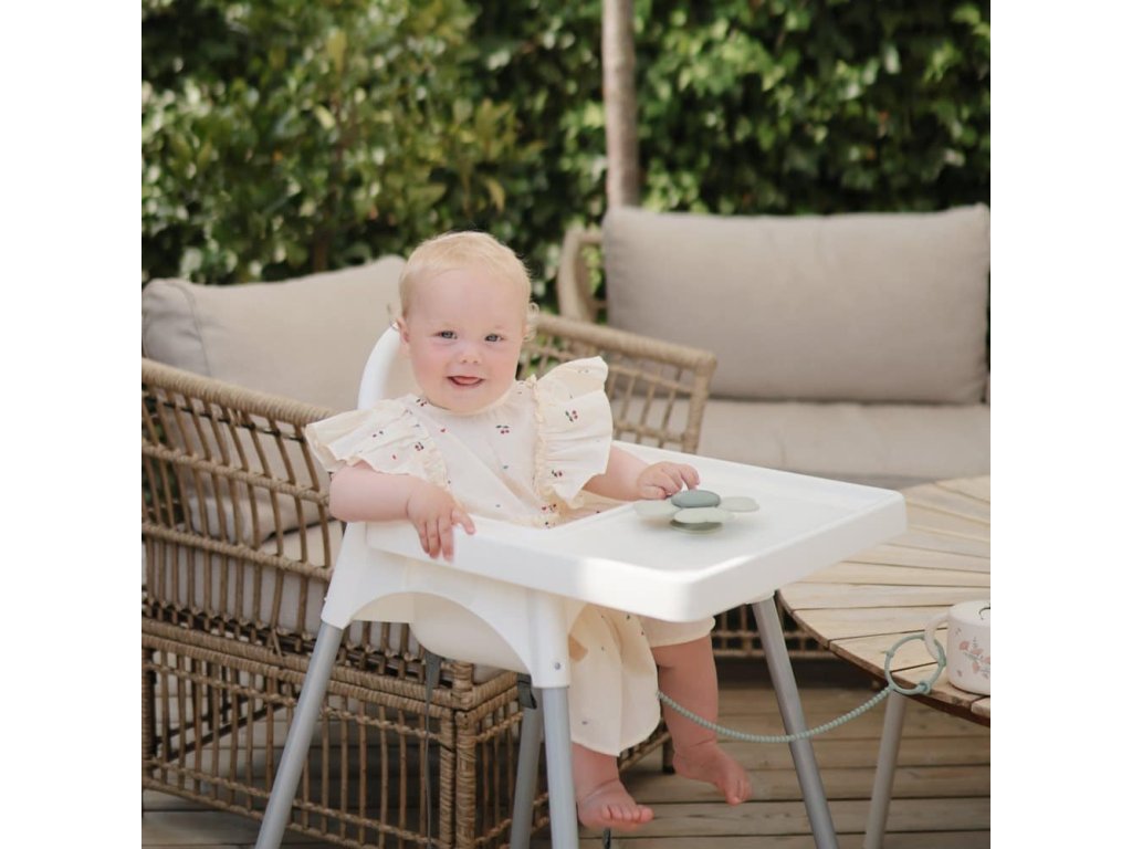 A játék műanyagból és élelmiszeripari szilikonból készült, és úgy tervezték, hogy érzékszervi élményeket teremtsen a gyermekek számára. Ezenkívül taplókoronggal rendelkezik, amely biztosítja, hogy a játék a helyén maradjon – ez megakadályozza a véletlen leeséseket és elősegíti az önálló játékot. Próbálja ki a tapadókorong funkcióját ajtókon, székeken, a kádban stb.