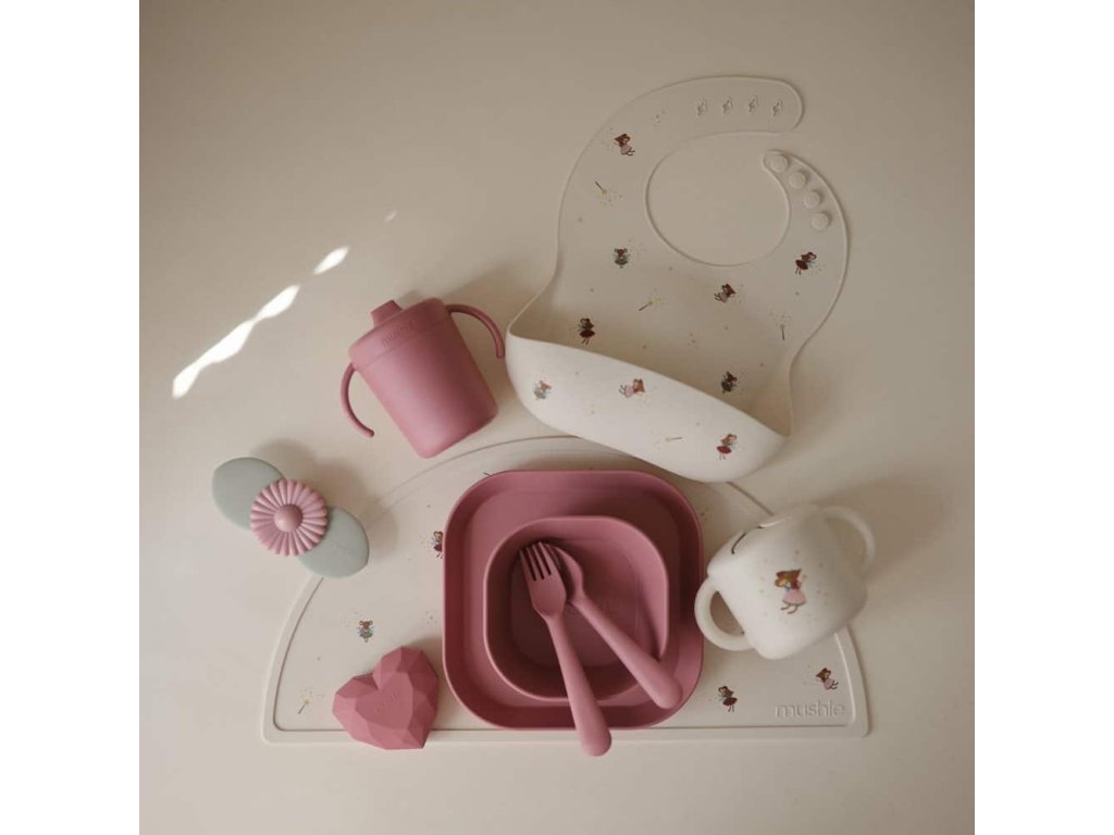 Tartsa gyermeke kényelmét és tisztaságát a gondosan megtervezett Mushie szilikon előke segítségével.
