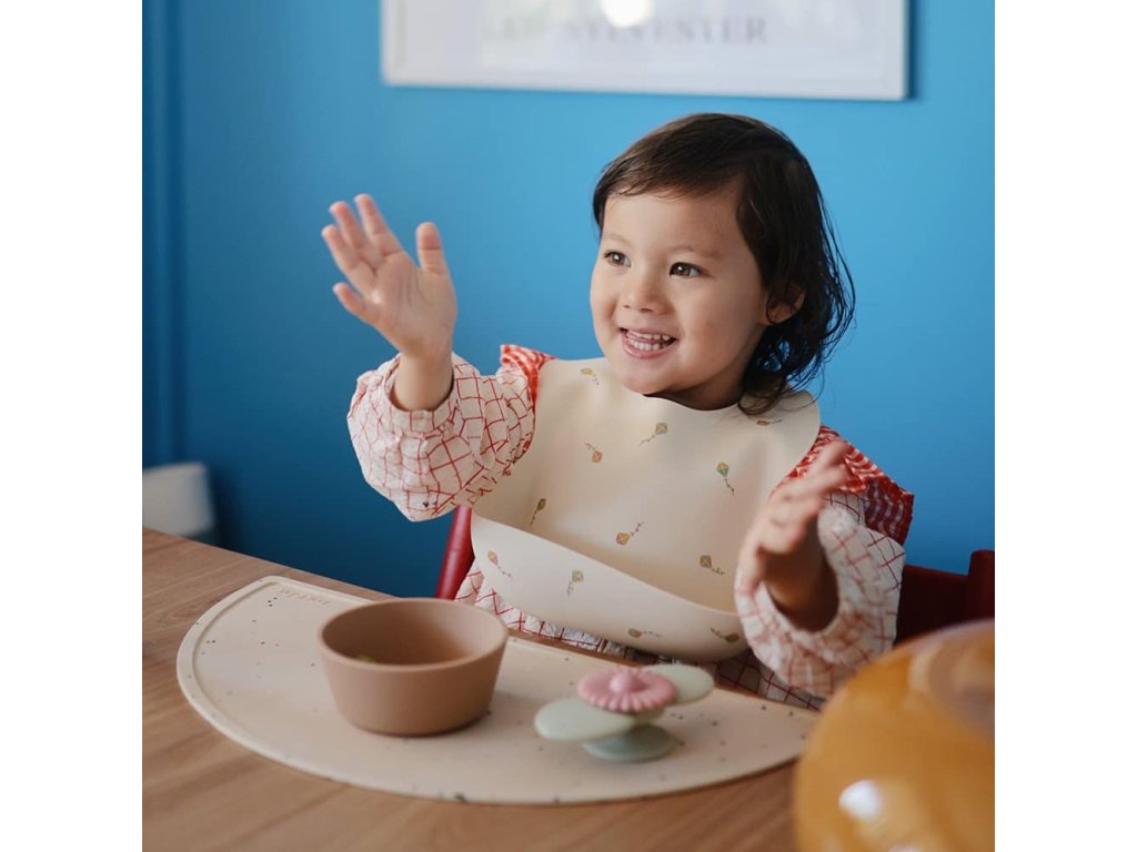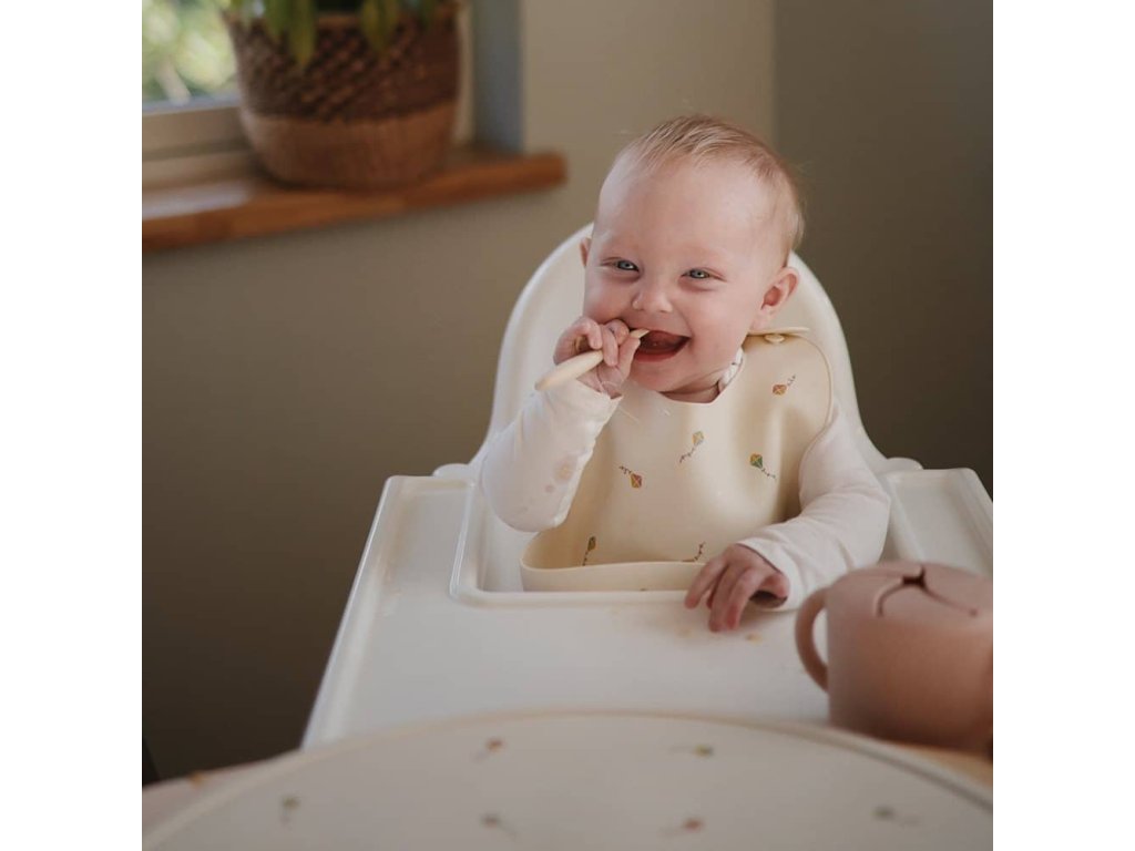 A szilikon előke tisztán tartja a babát és a környezetét: a mély zseb felfogja az ételt, és megakadályozza, hogy rendetlenséget okozzon a padlón és a baba ruháin. A lekerekített, beépített nyakpánt kényelmes viseletet biztosít.