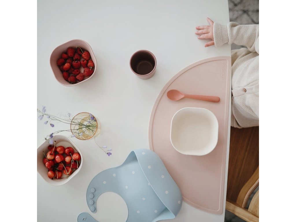 Tartsa tisztán gyermekét és környezetét a Mushie aranyos és színes alátéteivel. Kombinálja az alátéteket az edényekkel a hozzáillő színekben, hogy étkezés közben elegáns megjelenést kapjon.