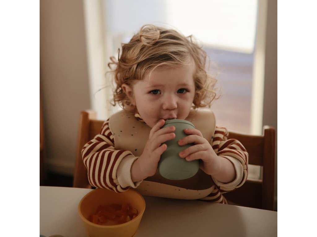 Egyszerű és gyönyörű csésze, ideális a kis kezek számára. Amikor a gyermek áttér a cumisüvegről a pohárra, a Mushie csésze segít fejleszteni a finommotorikát és az önálló étkezési szokásokat.