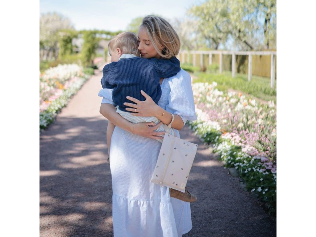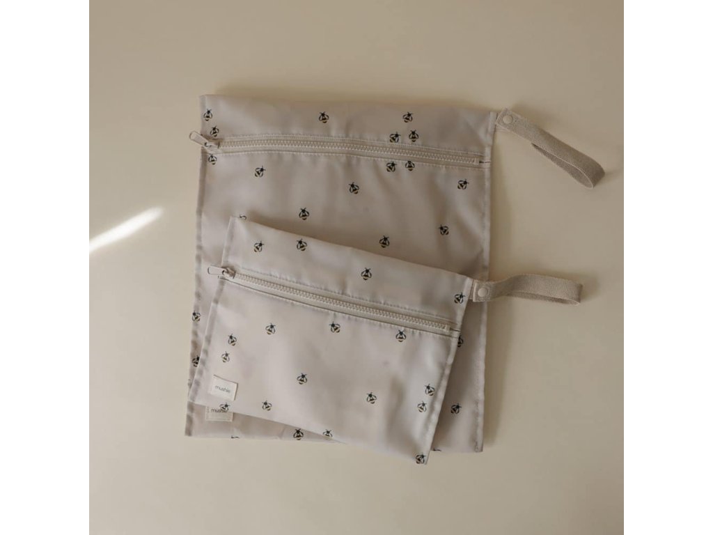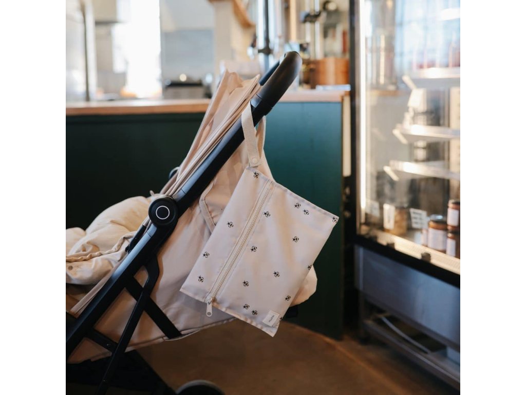Ezek a vízálló táskák cipzárasak , és vízálló anyagból készültek, amely mosógépben mosható. Úgy tervezték őket, hogy segítsenek kezelni a rendetlenséget útközben. A fogantyúk patentzárral rendelkeznek a könnyű felakasztáshoz vagy babakocsira való rögzítéshez. A lágy, semleges alapot visszafogott méhminta díszíti, játékos, mégis időtlen dizájnt kölcsönözve, amely gyönyörűen illeszkedik a mindennapi családi életbe.
