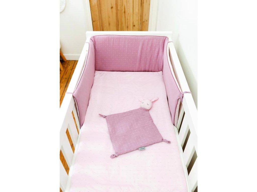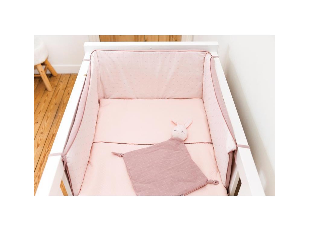 A kiságyba való védőfészek hangulatos és biztonságos alvást tesz lehetővé.