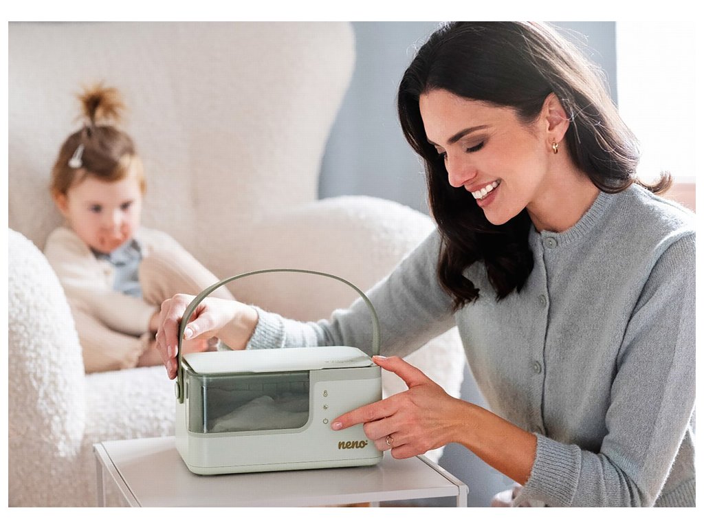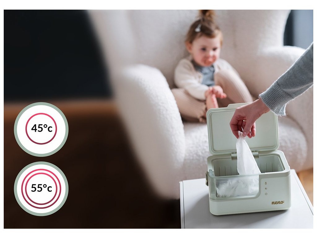 Biztosítsa babájának a maximális kényelmet minden pelenkacsere alkalmával! A Neno Abrazo egy prémium nedves törlőkendő-melegítő, amely egész nap melegen és nedvesen tartja a törlőkendőket – ideális a baba érzékeny bőrére.