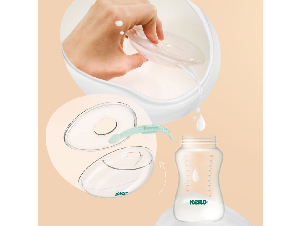 A praktikus, két darabos Neno Claro tejgyűjtő készlet lehetővé teszi, hogy megőrizze az értékes anyatej minden cseppjét.