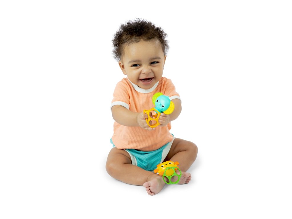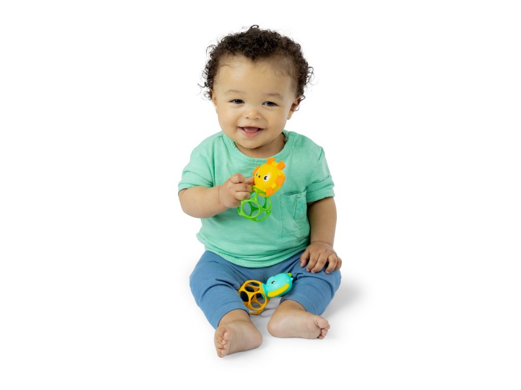 - Könnyen megfogható játékok, amelyek a Bright Starts rugalmas és tartós Oball technológiájával készültek; rengeteg ujjlyukkal készült a kis kezek számára a könnyű megfogás érdekében.