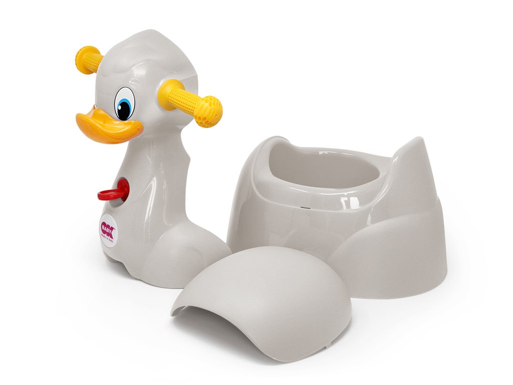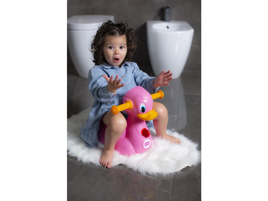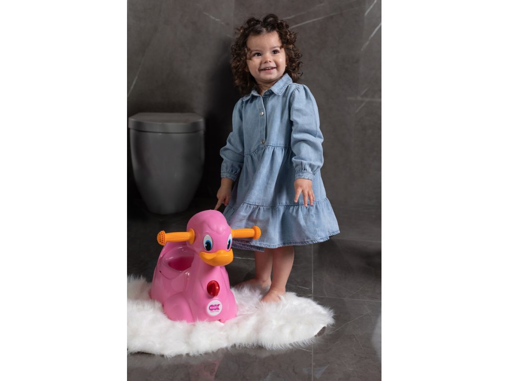 Kacsa alakú Quack potty, fedéllel együtt szállítva. A csőr megnyomásakor sípol, a fogantyúk puhák és kellemesen foghatók. Lehetőség van az elülső rész eltávolítására, így önálló biliz válik belőle. Termék méretei (ma x sz x mé): 33,5 x 42 x 29 cm