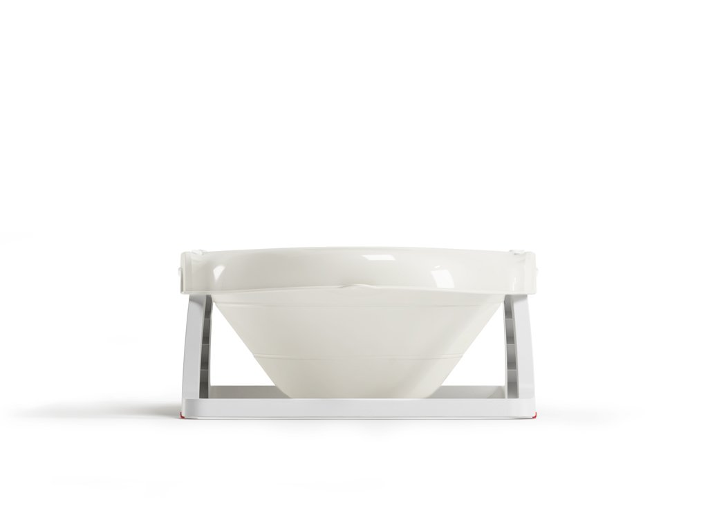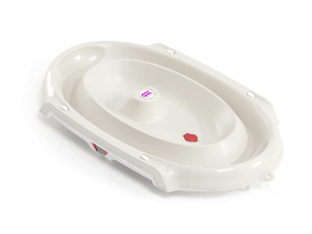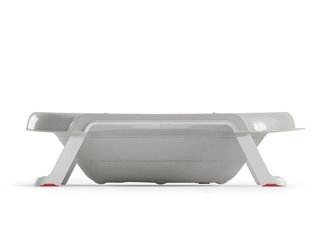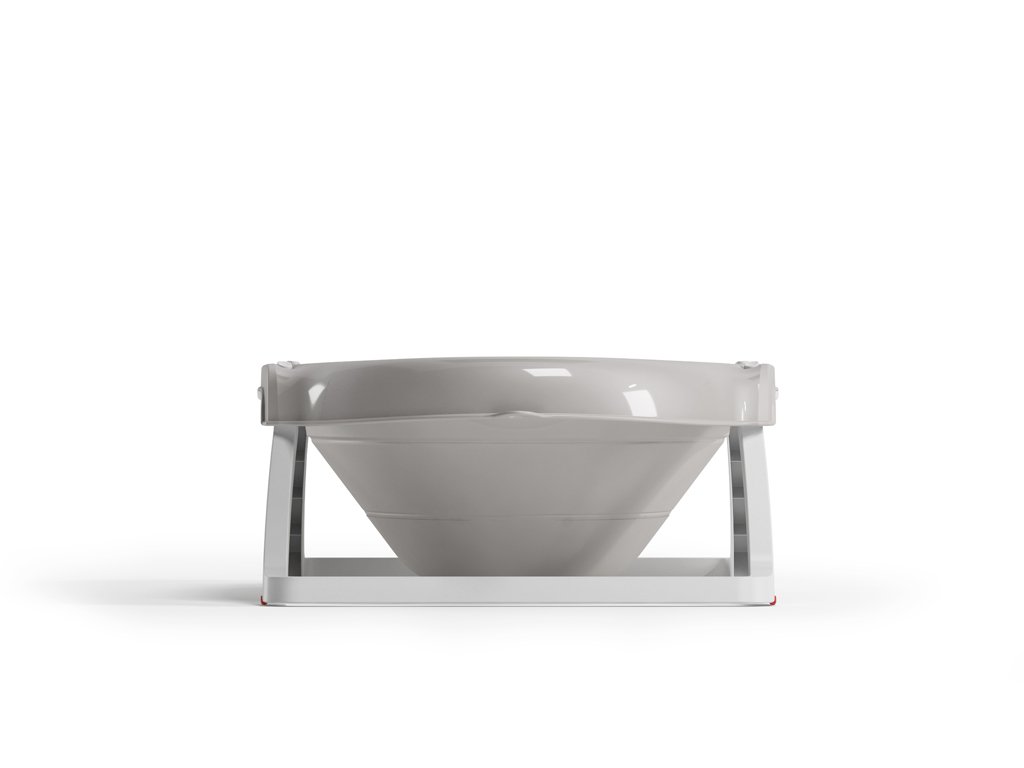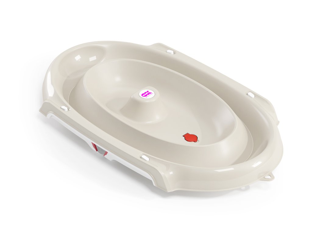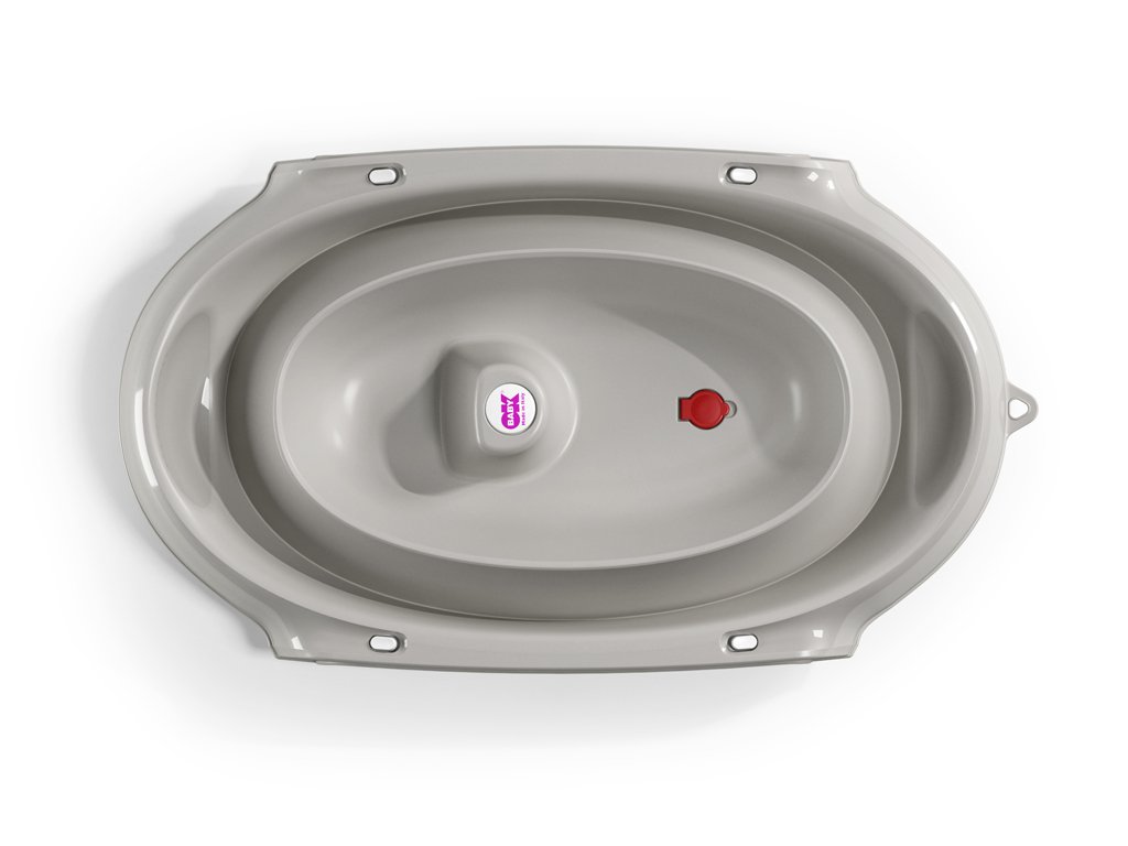 - A kád a gyermek lábai közé egy rögzítő ponttal van ellátva, amely megakadályozza a kicsúszást. E funkció révén a kád két ülőpozícióban használható, amelyek lehetővé teszik a gyermek számára, hogy jó pozíciót tartson növekedése során (0/6 hónapos és 6/12 hónapos korban), és mozgatni tudja a lábait és a karjait.