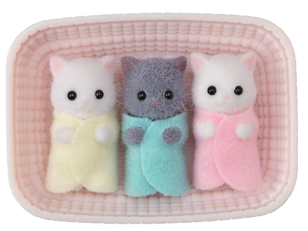 A perzsa macska hármas ikreknek bolyhos bundájuk van. Mindhárom hármas ikret hagyhatod aludni a mellékelt bölcsőben. A sárgában lévő kislány pajkos, és szeret húzni a növényekből és a nővére ruháján lévő szalagokból. A mentazöld ruhát viselő fiú szereti a menta illatát és a szélben mozgó levelek hangját. A rózsaszín ruhát viselő kislány nőtt fel a leggyorsabban mindhárom közül, és ő volt az első, aki átfordult alvás közben. Blair, Blake és Briana, a perzsa macskahármasok. Három éves kortól alkalmas gyermekek számára.