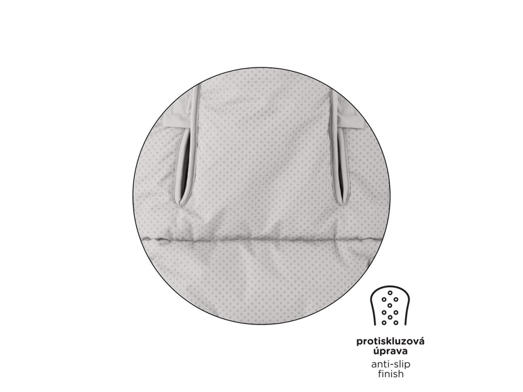 - A hátsó oldalon található csúszásgátló felület (ABS) megakadályozza, hogy a gyermek lecsússzon a babakocsiban.