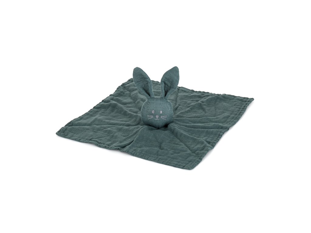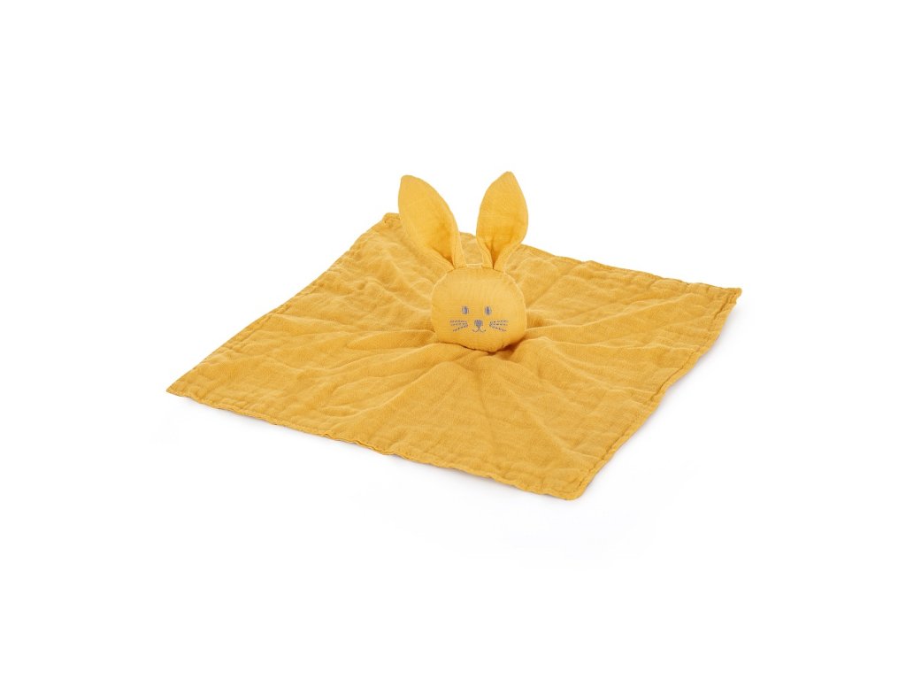 A puha muszlin nyuszi, Hugo egy titkos hobbit dédelget. Mindenkinél jobban szeret az ágyban hemperegni és aludni. Remek barát és alvójáték a legkisebb babáknak. Hugo szeret bújni, meleget és gyengédséget hoz. Vele senki sincs egyedül. Nagyon kellemes és puha tapintású, képes megnyugtatni a babát egy nehéz nap után.
