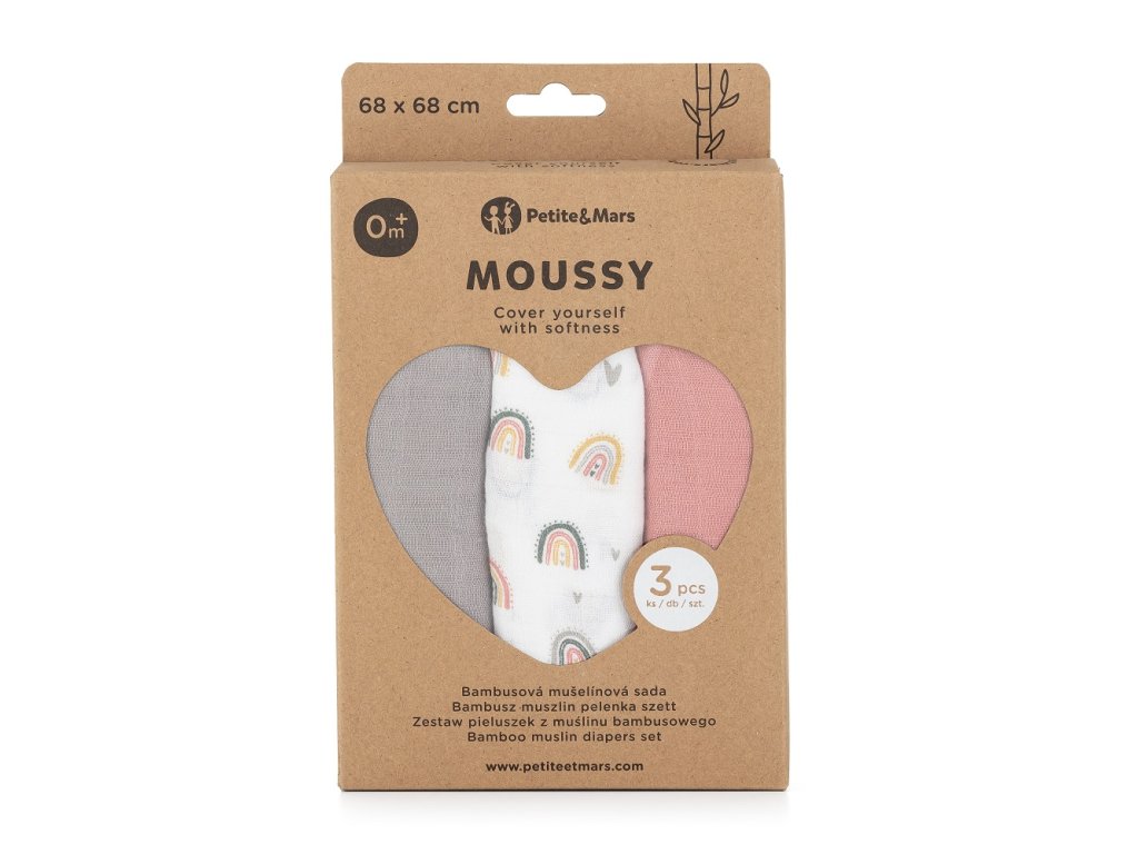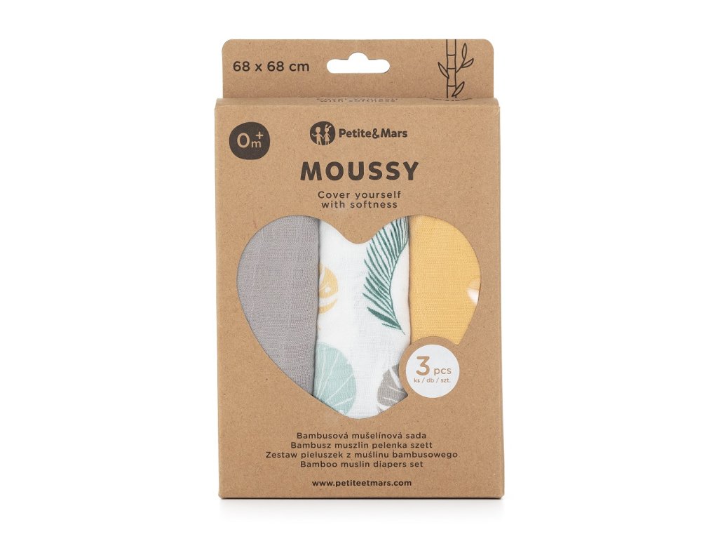 PETITE&MARS Bambusz muszlin pelenka szett 3 db Moussy, 68 x 68 cm