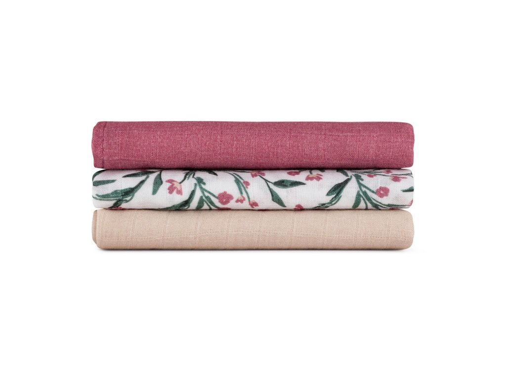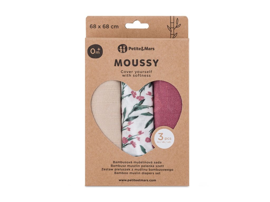 PETITE & MARS Bambusz muszlin pelenka szett 3 db Moussy Pink Meadow 68 x 68 cm