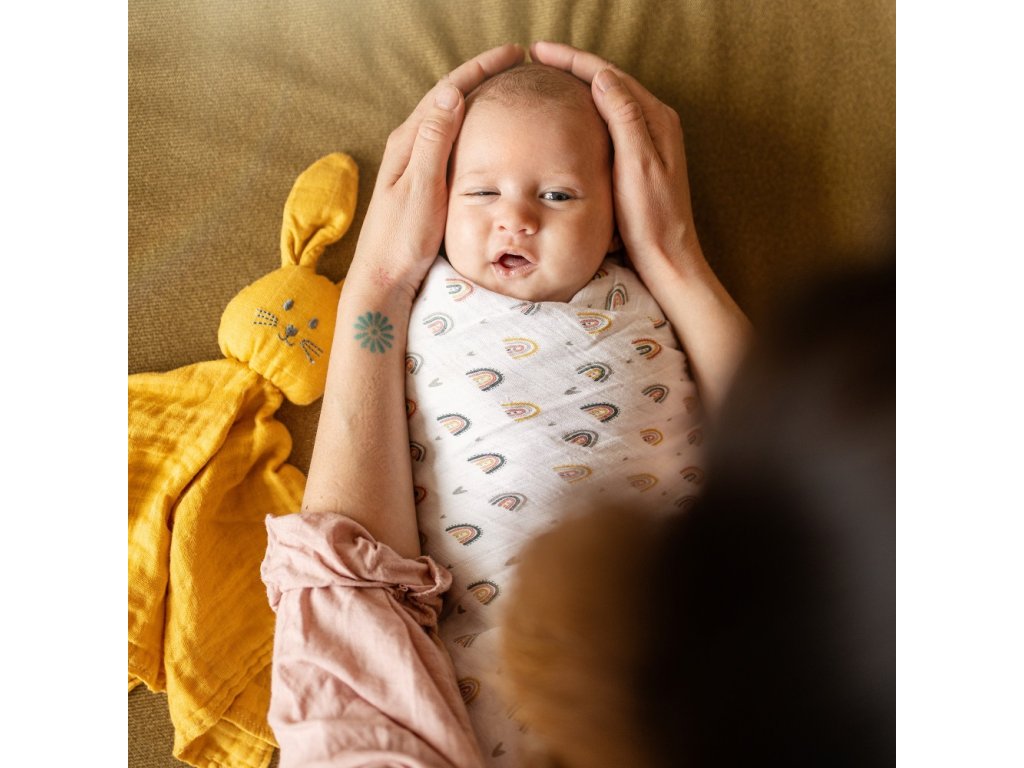 A bambusz muszlin pólya sokféleképpen használható. Használható például: