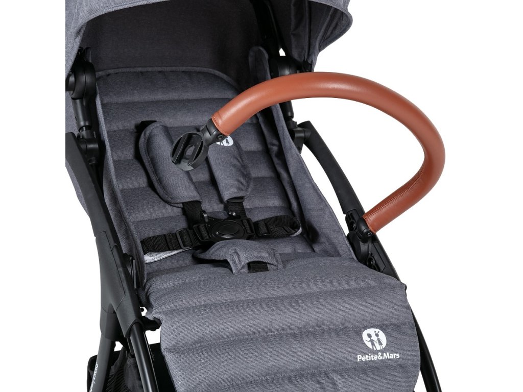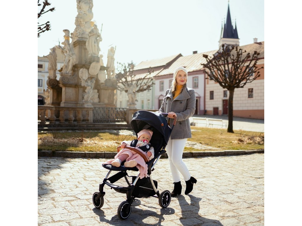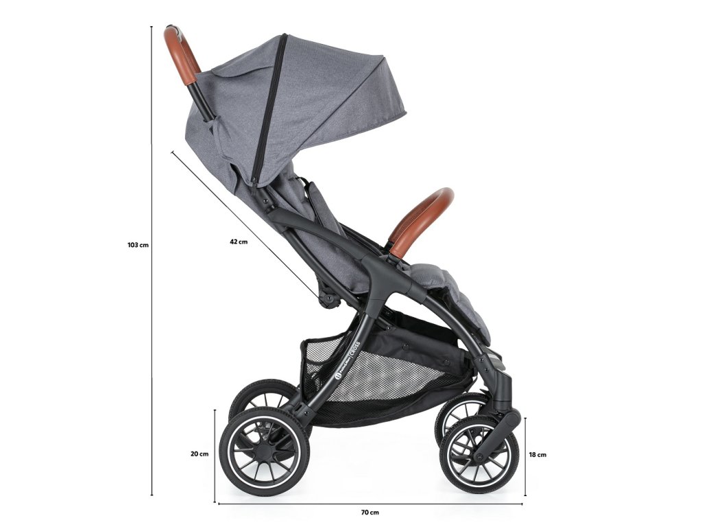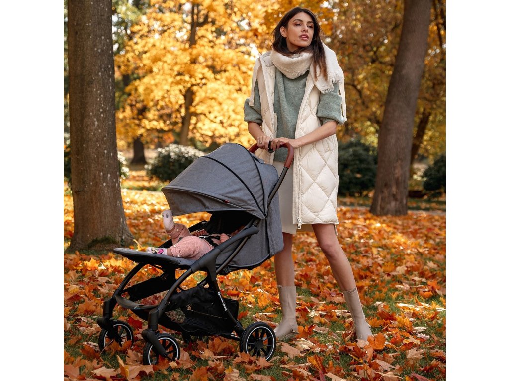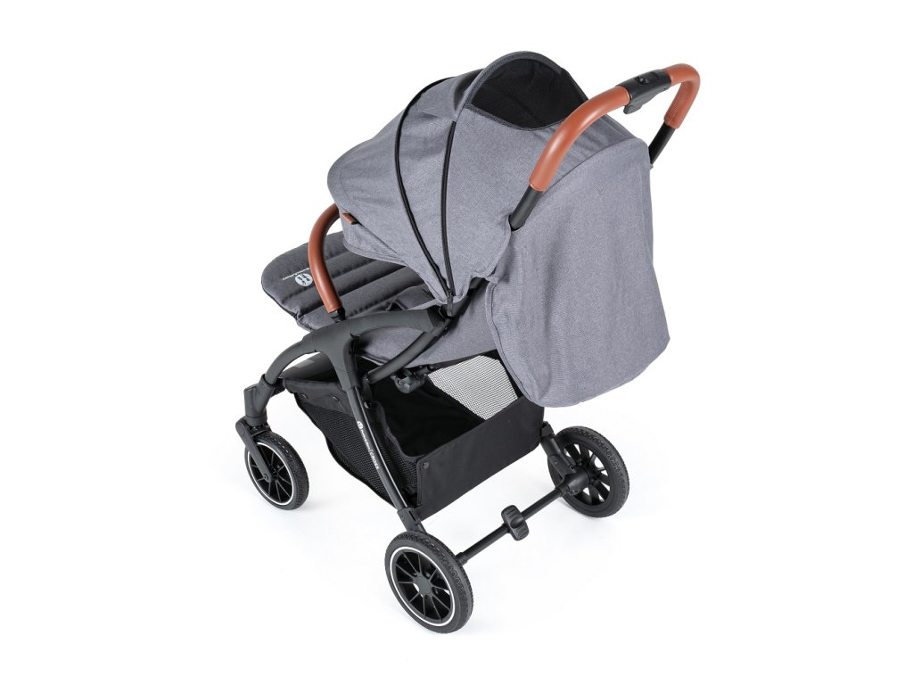 A gyermek számára kényelmes ülést biztosít a tágas és kellően széles ülésnek köszönhetően. A háttámla állítható, aminek köszönhetően a gyermek kényelmesen alszik a babakocsiban. A lábtartó is állítható. A meghosszabbítható napellenző a gyermek számára intimitást biztosít, és megvédi az erős napsütéstől vagy a kedvezőtlen időjárástól. A napellenzőn található ablak lehetővé teszi a gyermekkel való kapcsolattartást és annak ellenőrzését. A tapintásra kellemes, öko-bőrből készült karfa levehető, így könnyen behelyezheti a gyermeket a babakocsiba. A gyermeket biztonságosan rögzítheti az 5 pontos, párnázott biztonsági övvel.