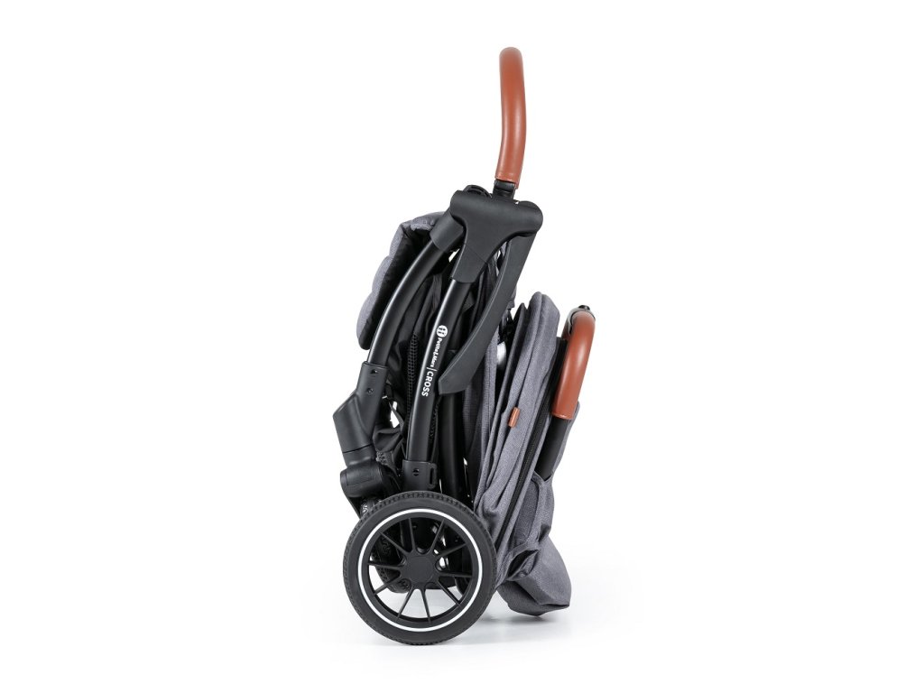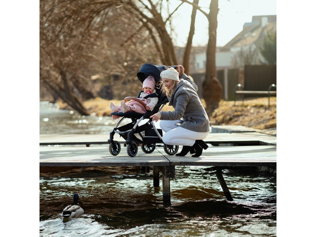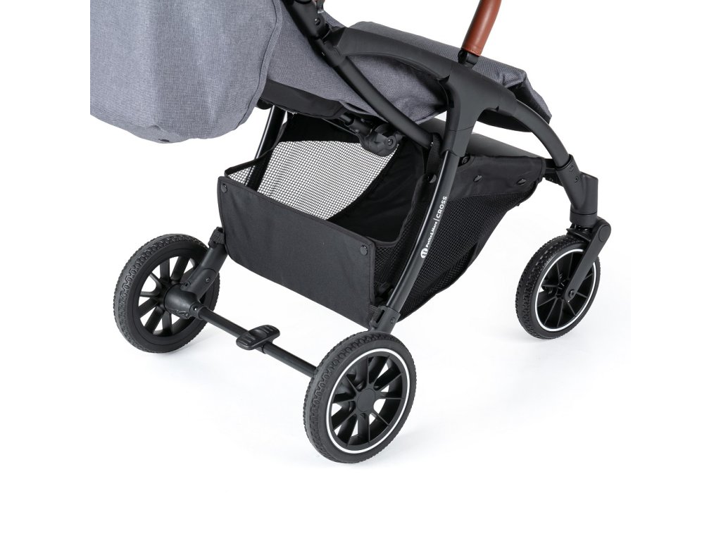 A babakocsi könnyen kezelhető és jól irányítható. A nagy gumi kerekeknek és a rugós szerkezetnek köszönhetően könnyedén megbirkózik a városi közlekedéssel és a természetben való sétákkal is. Az első kerekek átmérője 18 cm, a hátsóké pedig 20 cm.