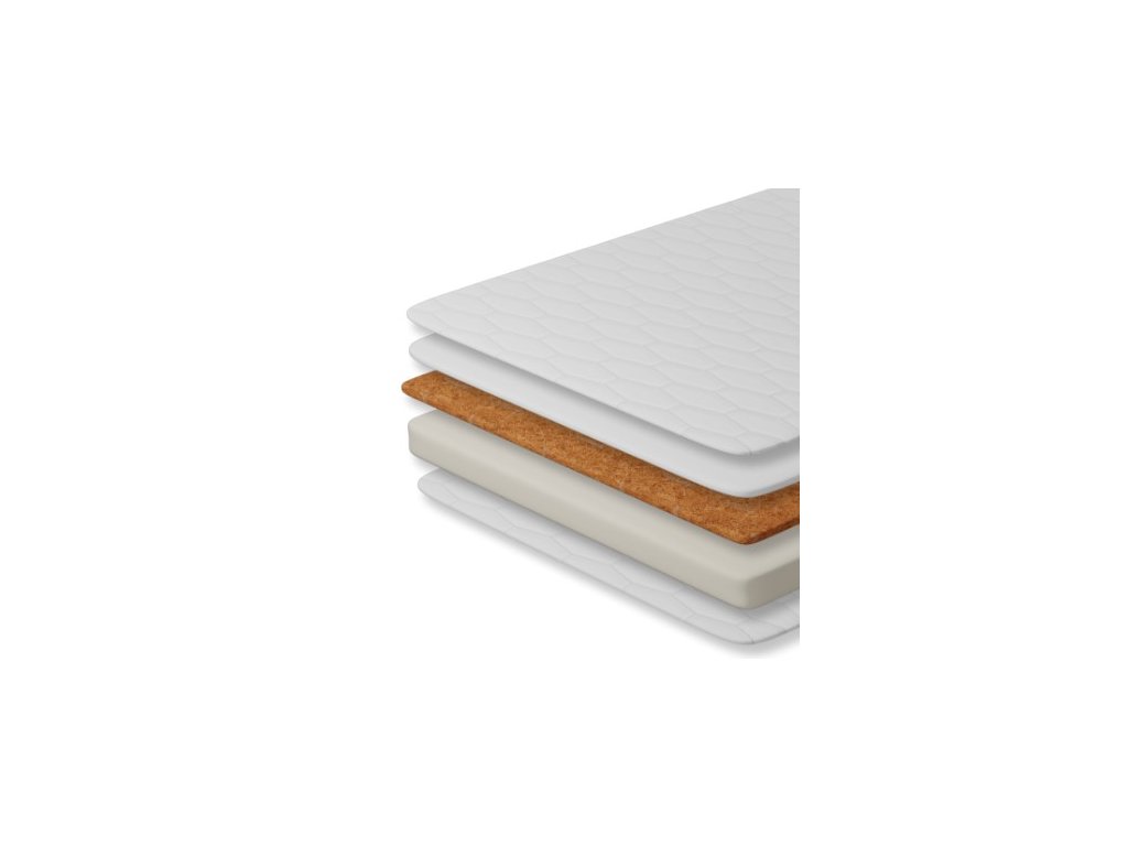 A matrac felső rétege természetes kókuszrostból készül, amely nagyon légáteresztő, elvezeti a nedvességet, és természetes antiallergén és antibakteriális tulajdonságaival egészséges környezetet biztosít a baba számára. Nem tartja vissza a nedvességet és a szagokat, és nem szaporodnak benne az atkák.