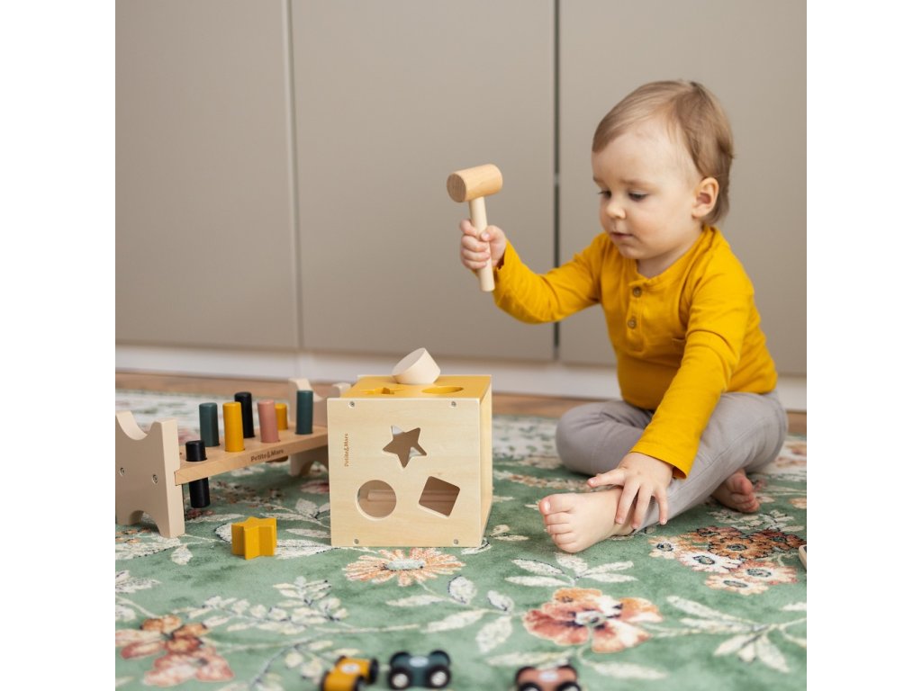 A játék 1 éves kortól ajánlott gyermekek számára. A készlet tartalmaz egy válogató kockát és 12 színes darabot. Minden elem gondosan tesztelt, ellenáll a dobásoknak és ütéseknek, ami garantálja a tartósságot még intenzív játék során is.