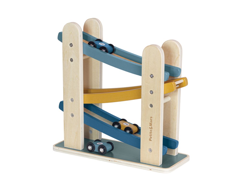 A MILKY WAY fa versenypálya a kis versenyrajongók számára egy többszintű kaland. A készlet 3 szintből és 3 kis autóból áll, amelyek felülről lefelé indíthatók, ami vonzó szórakozást nyújt. Az autók külön versenyzésre is használhatók, a pálya minimalista dizájnja pedig finom, visszafogott színekben tökéletesen illeszkedik a gyerekszobába.