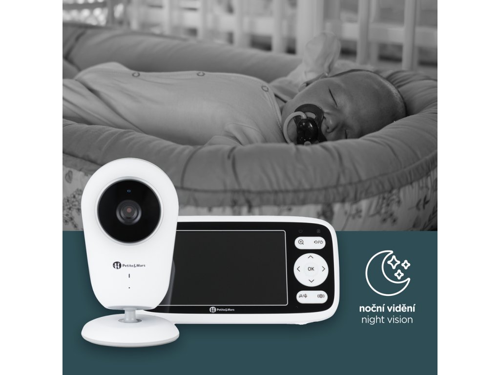 A 4" kijelzővel és 720p HD felbontással rendelkező szülői egység tiszta képet garantál a babáról – még gyenge fényviszonyok mellett is, az éjjellátónak köszönhetően. A 3×-os digitális zoom segítségével minden részletet közelről megtekinthet – a nyugodt lélegzetet, a mozgást vagy a mosolyt – anélkül, hogy megzavarná az alvást.