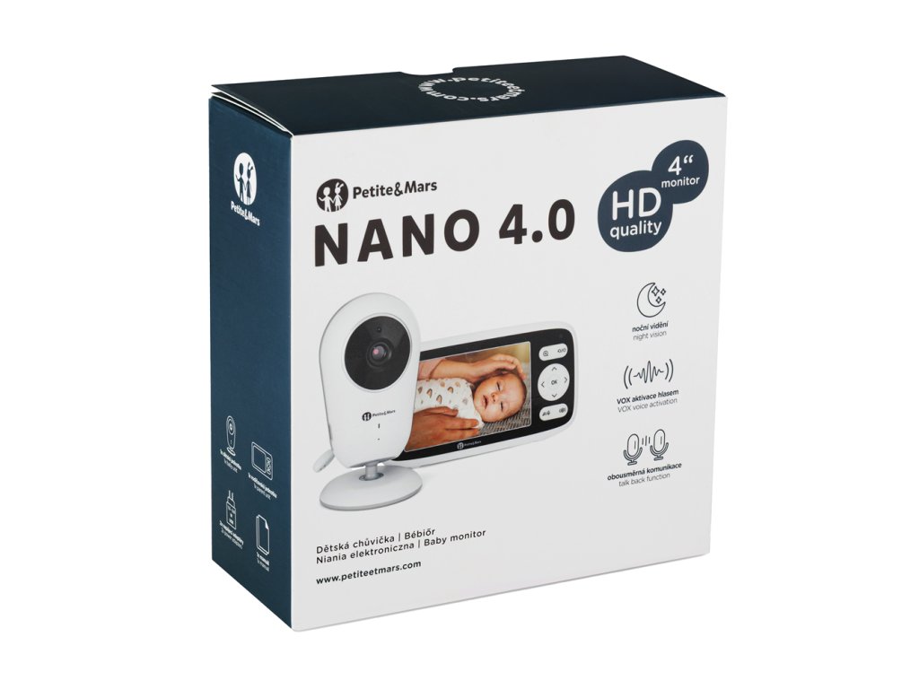 A NANO 4.0 bébiőr megbízható megfigyelést biztosít gyermeke számára, a hangsúlyt az egyszerűségre és a praktikus használatra helyezve. A monitor vezeték nélkül működik a beépített, újratölthető akkumulátornak köszönhetően. A kamerát áramforráshoz kell csatlakoztatni, de powerbankhoz is csatlakoztatható. Ennek köszönhetően a szülő nincs a konnektorhoz kötve, ami kényelmes használatot tesz lehetővé otthon és a szabadban is, nagyobb mozgásszabadságot biztosít, és ideális útitárssá teszi a bébiőrt.
