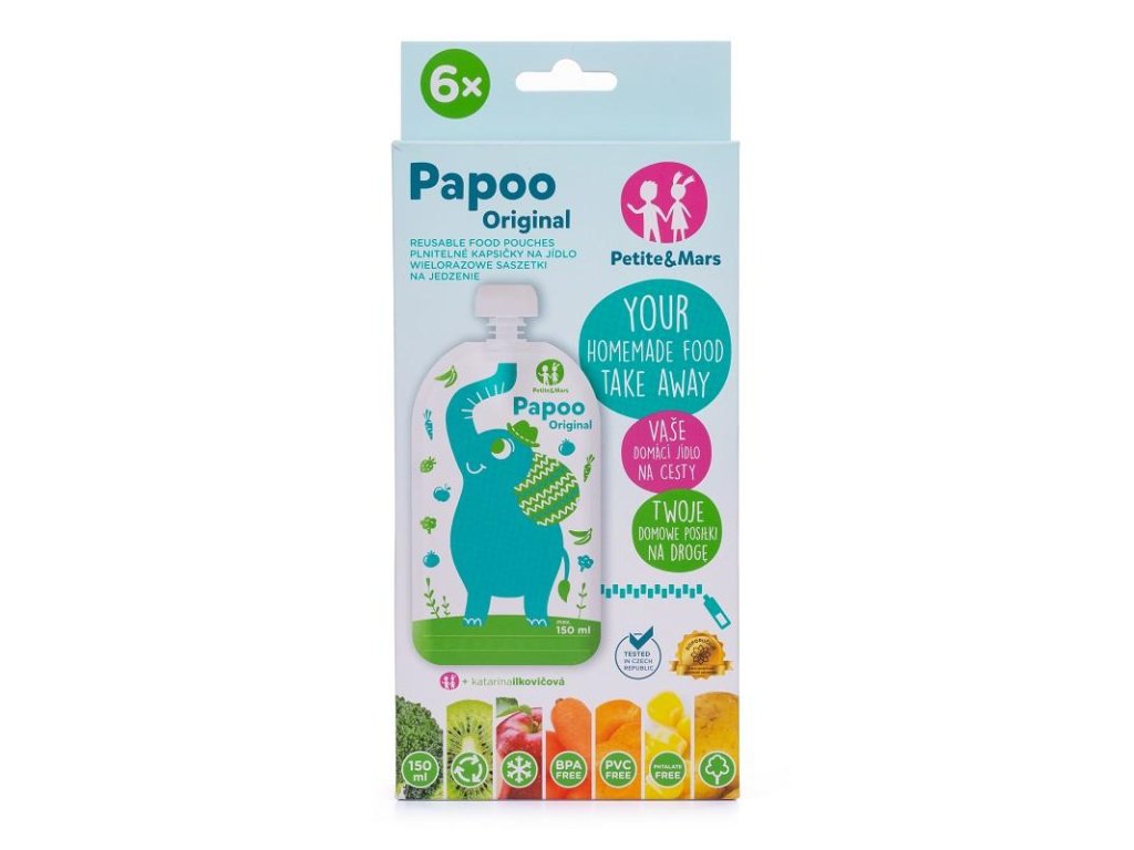 PETITE&MARS Papoo Original Elephant ételtasak 6 db