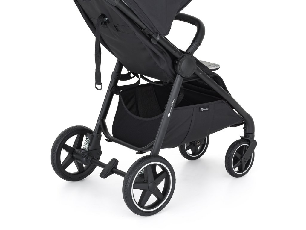 - A könnyű, rugós, tömör gumi kerekek stílusos fehér szegéllyel kényelmes utazást biztosítanak még egyenetlen terepen is