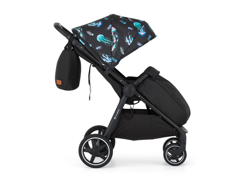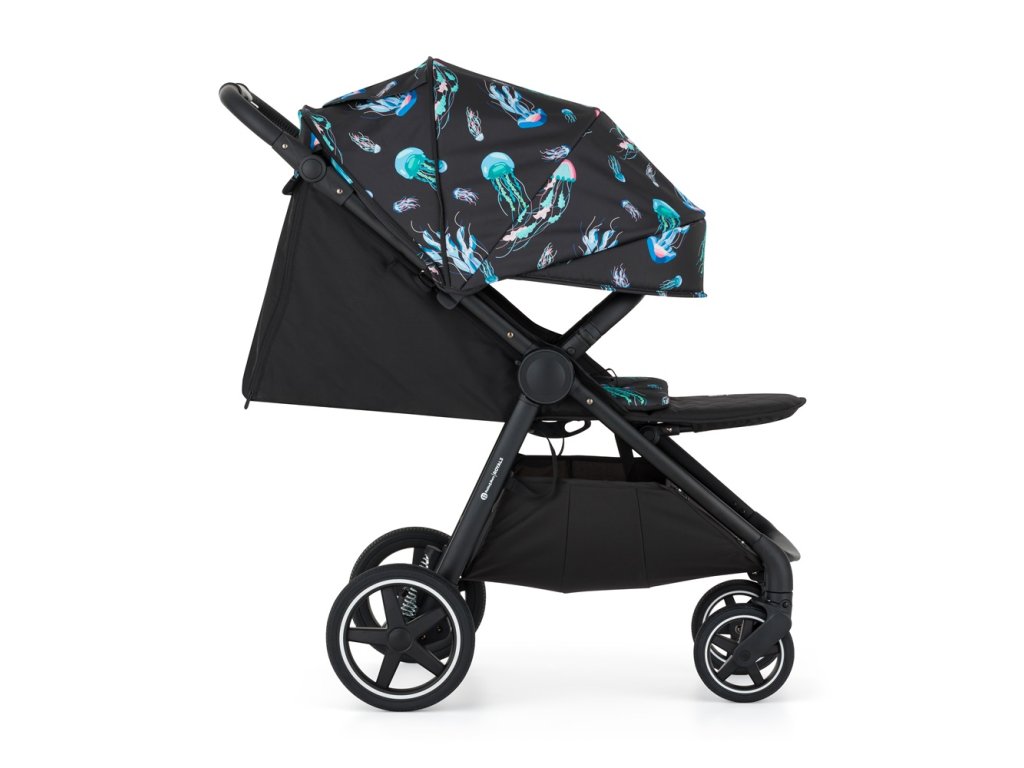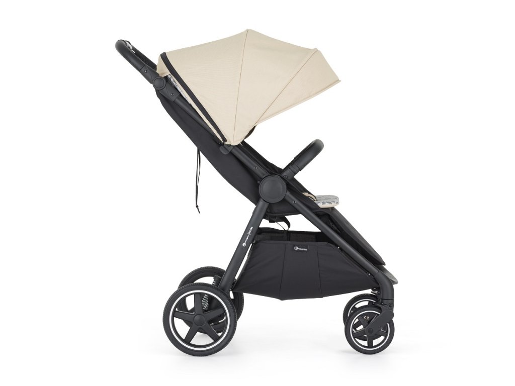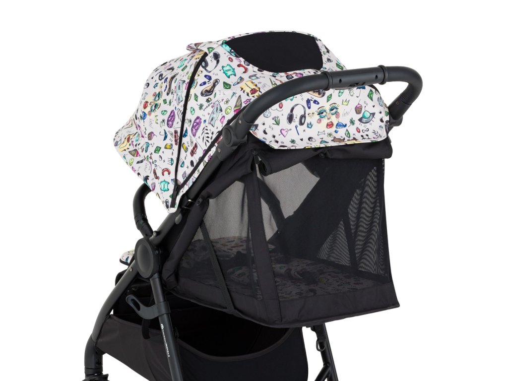 A baba értékelni fogja a kényelmet és a bőséges helyet, a továbbfejlesztett hálós háttámlának és az extra hosszú tetőnek köszönhetően pedig a forró nyáron is élvezheti a kényelmes alvást. Az anyukának a forgatható fogantyú és az új mágneses csat segít a baba leültetésében.