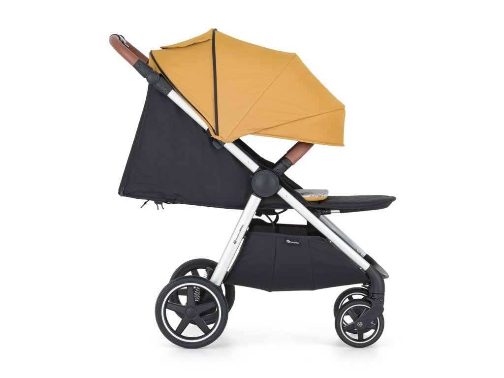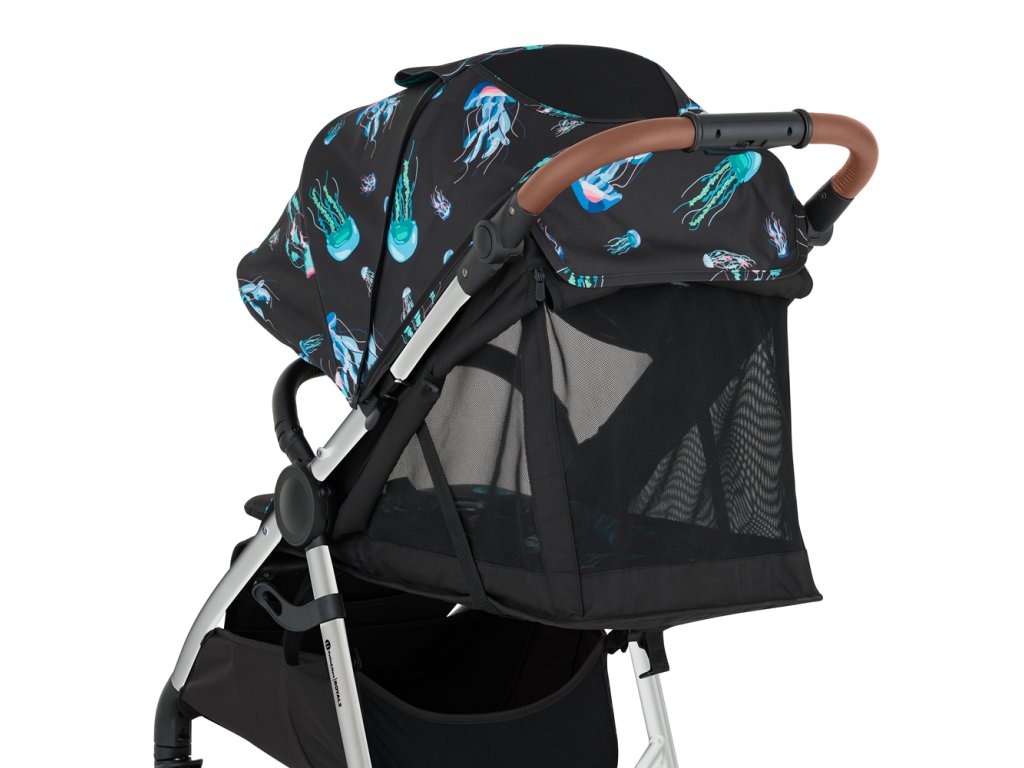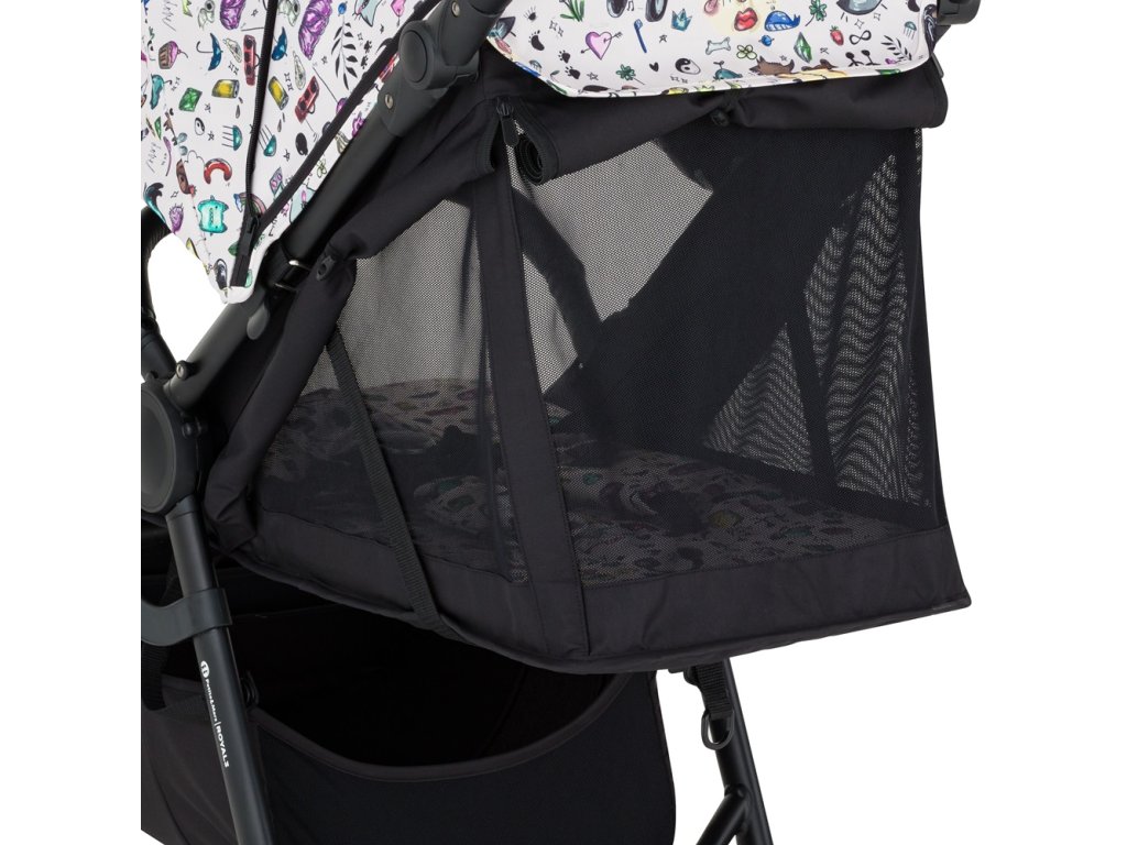 A baba értékelni fogja a kényelmet és a bőséges helyet, a továbbfejlesztett hálós háttámlának és az extra hosszú tetőnek köszönhetően pedig a forró nyáron is élvezheti a kényelmes alvást. Az anyukának a forgatható fogantyú és az új mágneses csat segít a baba leültetésében.