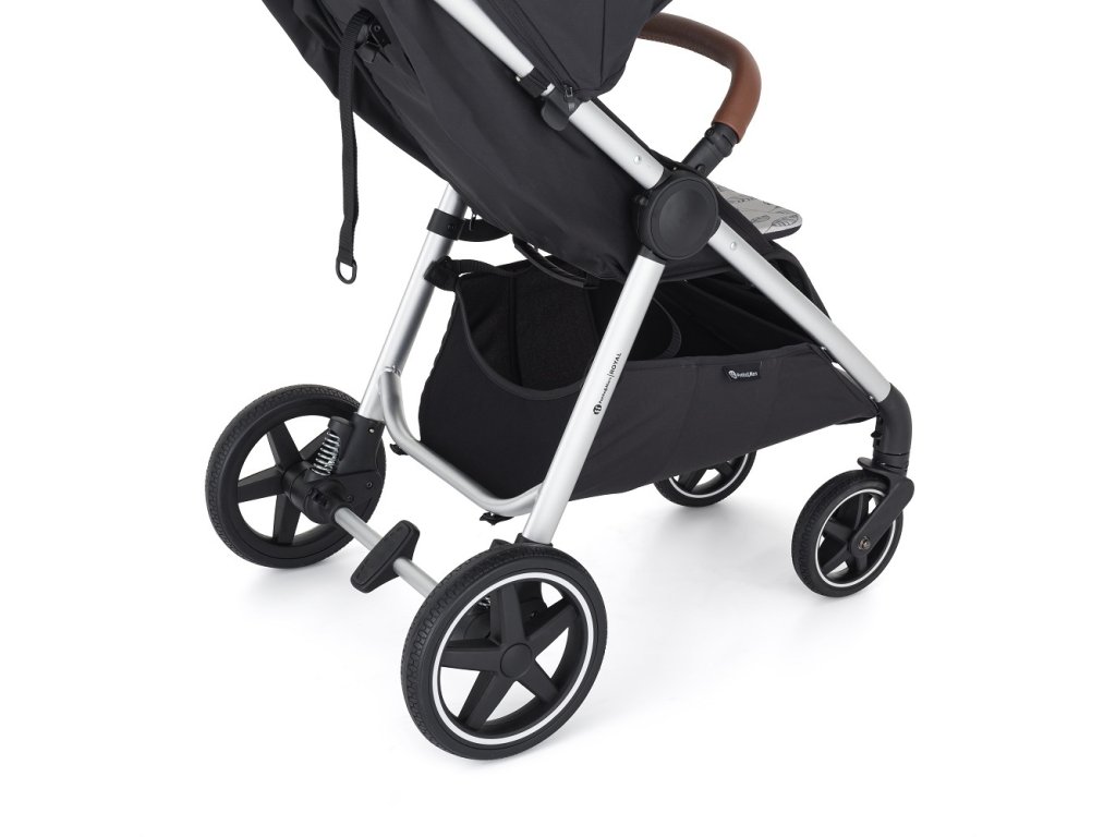 - A babakocsi könnyen irányítható a forgó első kerekeknek köszönhetően, amelyek rögzíthetők (a kerekek forgásának blokkolása)