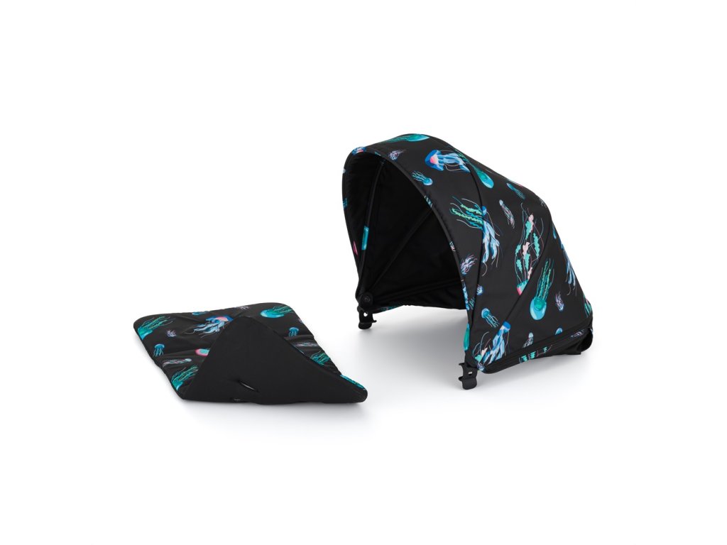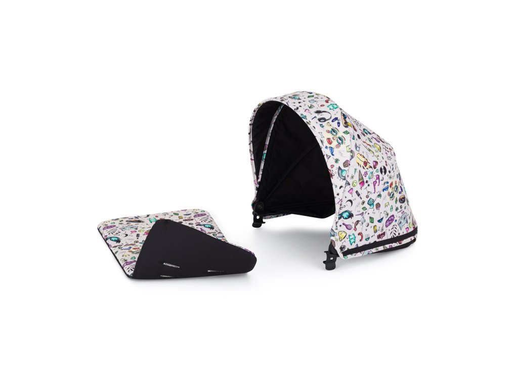 - A hosszabbító napellenző stílusos mintás anyaggal van bélelve