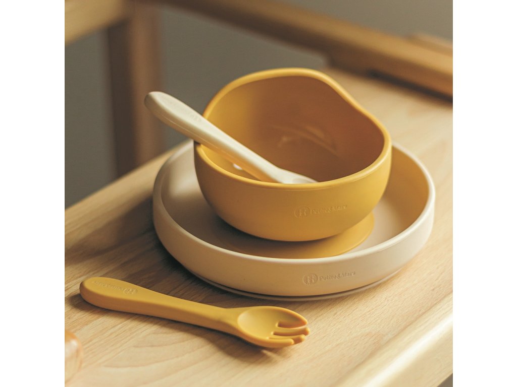PETITE&MARS Szilikon étkészlet TAKE&MATCH 2 db tál + evőeszköz 6m+