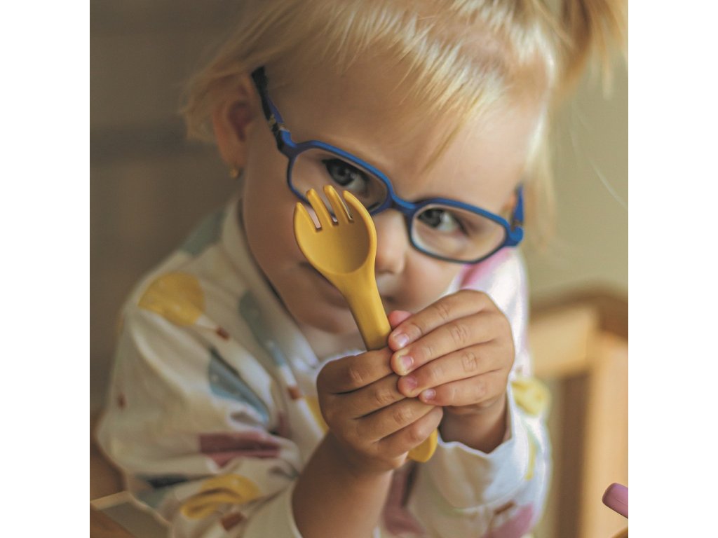 A villából és kanálból álló készlet teljes egészében BPA-mentes, élelmiszeripari szilikonból készült. Ennek köszönhetően gyermeke meleg és hideg ételeket is fogyaszthat az evőeszközzel. A rugalmas szilikonnak köszönhetően az evőeszköz ideális a kisgyermekek érzékeny ínyéhez. Az evőeszköz alkalmas 6 hónapos kortól azoknak a gyermekeknek, akik ismerkednek a változatos étrenddel, és azoknak is, akik már sikeresen tanulnak önállóan enni. A lekerekített formák és a kis méretek megkönnyítik a gyermek számára a megfogást és ezáltal az evést.