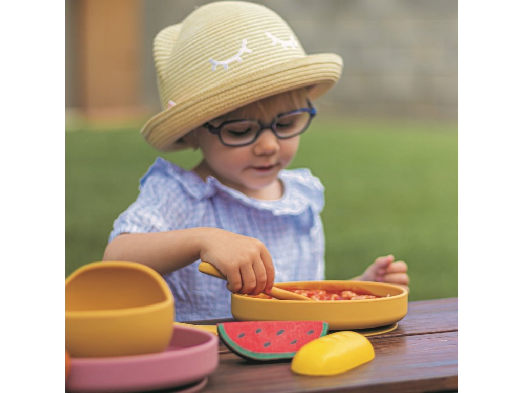 A praktikus tányér teljes egészében BPA-mentes élelmiszeripari szilikonból készült. Ennek köszönhetően biztonságosan használható minden ételhez, meleghez és hideghez, és az étel benne gond nélkül melegíthető mikrohullámú sütőben vagy tárolható hűtőszekrényben. A tartós és puha szilikonnak köszönhetően nem kell attól tartania, hogy a tányér eltörik, lepattan vagy deformálódik – hosszú ideig használhatja sérülésmentesen. Alkalmas 6 hónapos kortól kezdve azoknak a gyermekeknek, akik ismerkednek a bővített étrenddel, és azoknak, akik már sikeresen tanulnak önállóan enni. A lekerekített forma megkönnyíti a gyermek számára az evést. A gyermek és a szülők kényelme érdekében a tányér tapadókoronggal van ellátva, amely az asztal vagy a szék felületére tapad.