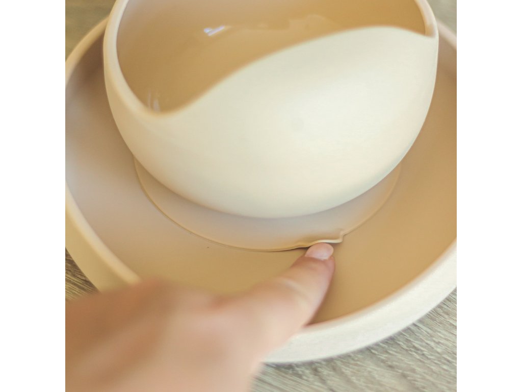 A praktikus és praktikus tál BPA-mentes élelmiszeripari szilikonból készült. Ennek köszönhetően biztonságosan használható minden ételhez, meleghez és hideghez, az étel gond nélkül melegíthető mikrohullámú sütőben vagy tárolható hűtőszekrényben. A tartós és puha szilikonnak köszönhetően nem kell attól tartania, hogy a tál eltörik, lepattog vagy deformálódik – hosszú ideig használhatja sérülésmentesen. Alkalmas 6 hónapos kortól kezdődő gyermekek számára, akik ismerkednek a bővített étrenddel, és azok számára, akik már sikeresen tanulnak önállóan enni. A lekerekített forma, a csúszós belső tér és a megemelt perem megkönnyíti a gyermek számára az evést. A gyermek és a szülők kényelme érdekében a tálon tapadókorong található, amely tapad az asztal vagy a szék felületéhez. A tapadókorong működésének feltétele az asztallap tiszta felülete.