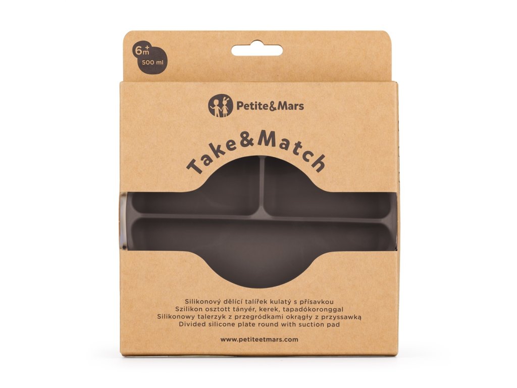 PETITE&MARS Szilikon osztott tányér Take&Match Bitter Cocoa 6h+