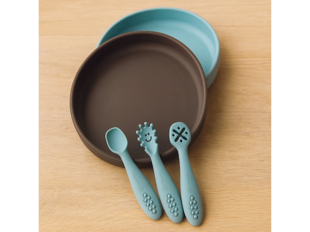 A készlet élelmiszeripari szilikonból készült, BPA nélkül. Ennek köszönhetően gyermeke meleg, hideg és különböző állagú ételeket is fogyaszthat az evőeszközzel. A rugalmas szilikonnak köszönhetően a kanalak ideálisak a kisgyermekek érzékeny ínyéhez. A kanalak 6 hónapos kortól alkalmasak azoknak a gyermekeknek, akik ismerkednek az első ételekkel, és azoknak, akik már sikeresen tanulnak önállóan enni. A lekerekített formák és a kis méretek megkönnyítik a gyermek számára a megfogást és az evést.