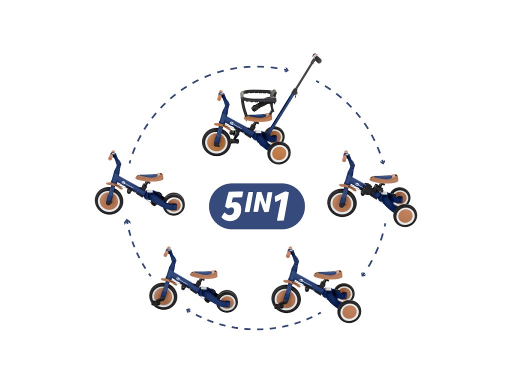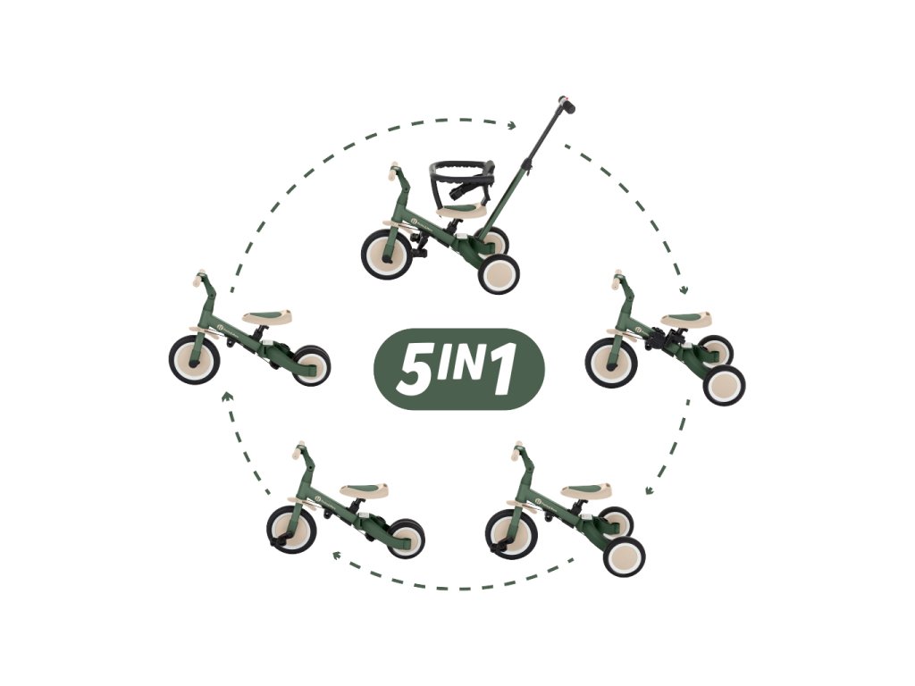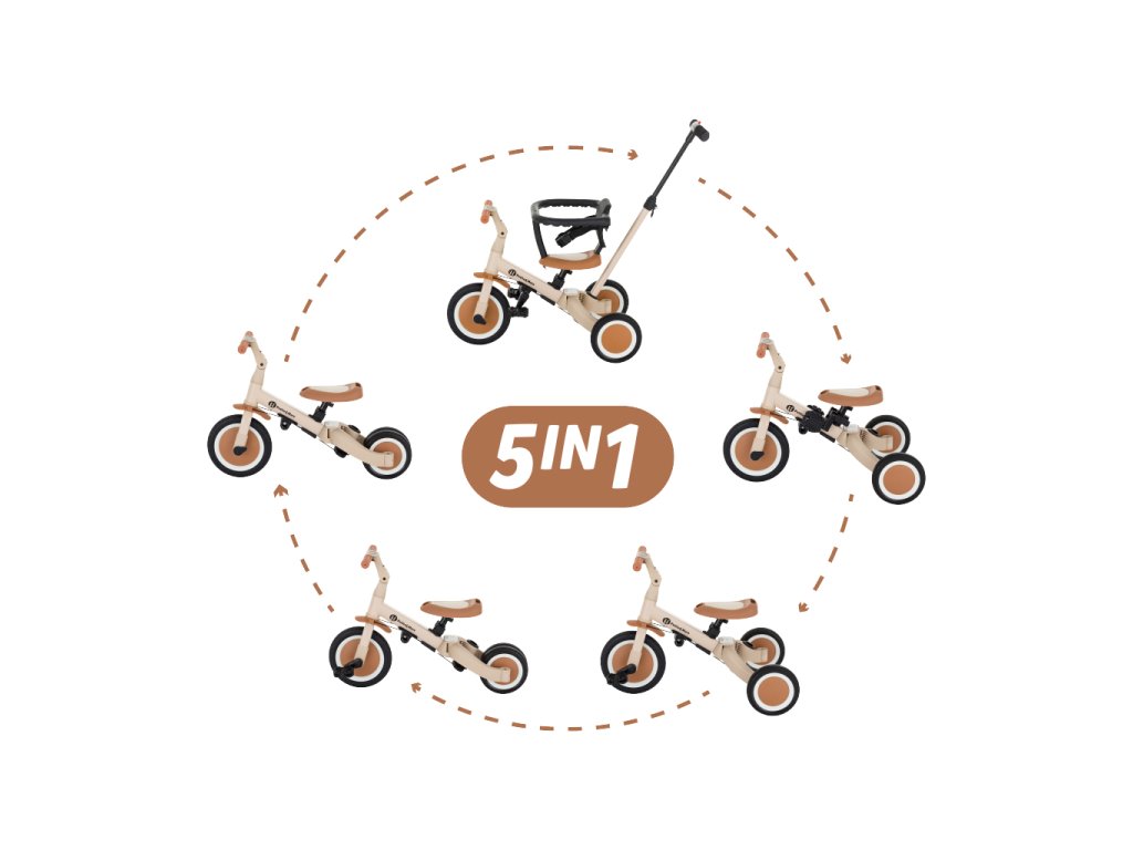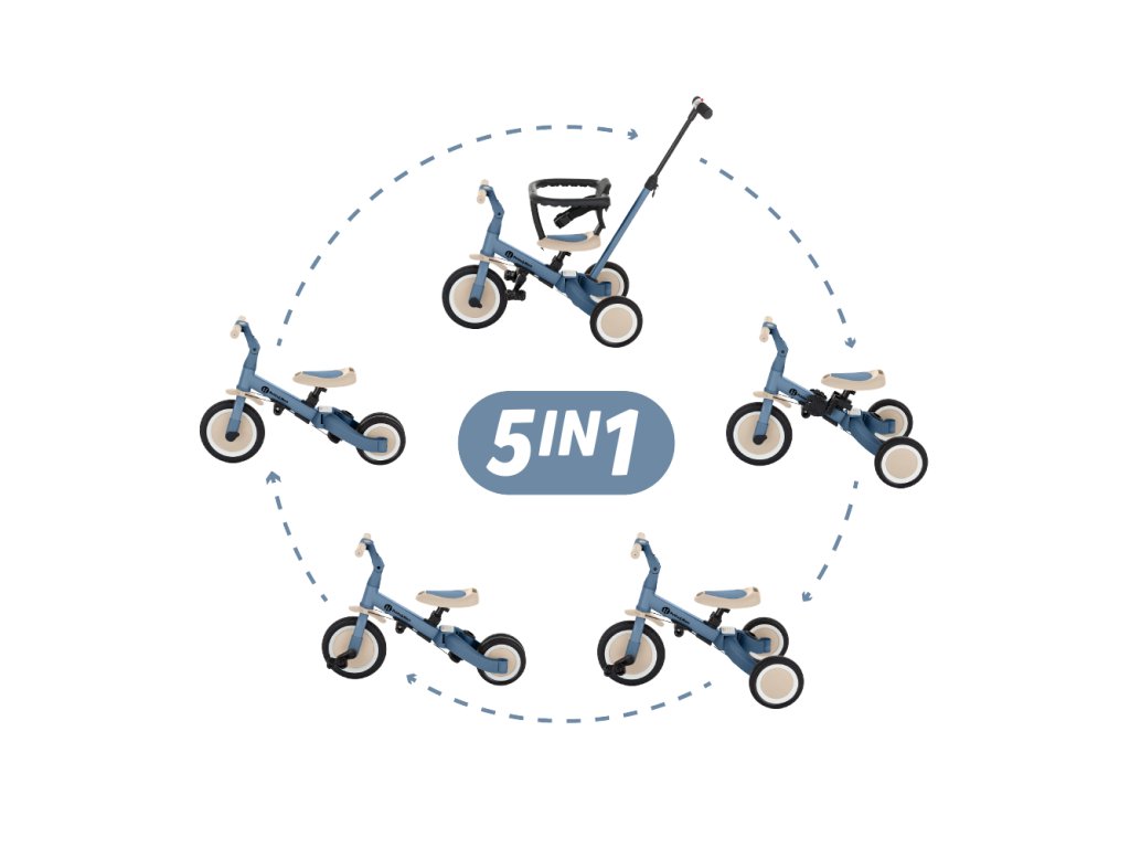 A kerékpár egyedülálló tulajdonsága a multifunkcionalitása, melynek köszönhetően öt különböző üzemmódban használhatja a gyermek életkorától és képességeitől függően:
